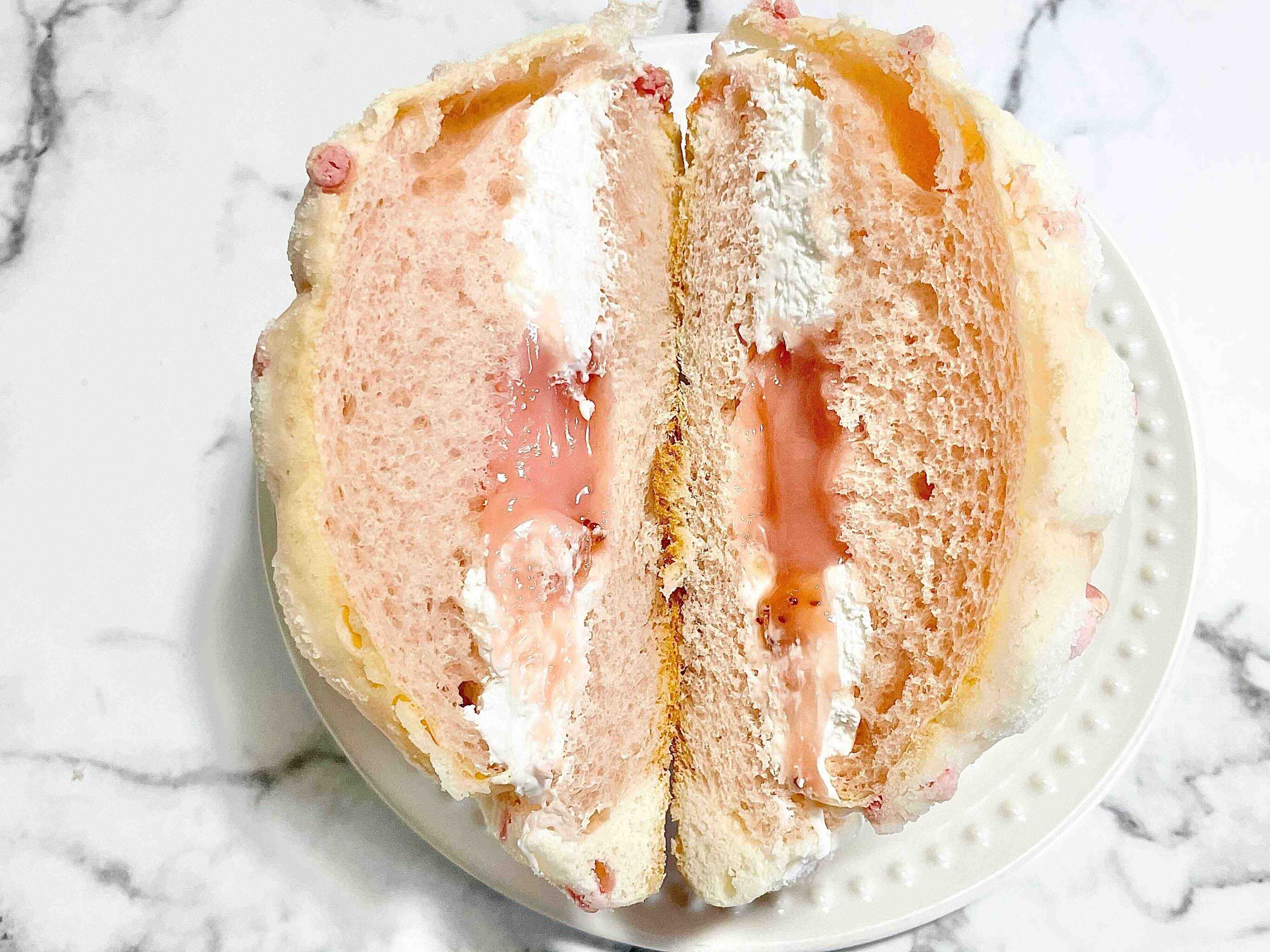 チョコチップ入りのクッキー生地はサクっとしていて、中はふんわりしっとりした生地。中のミルキーなホイップクリームはくちどけがよく、いちごクリームの甘酸っぱさとのバランスがちょうどいいです。