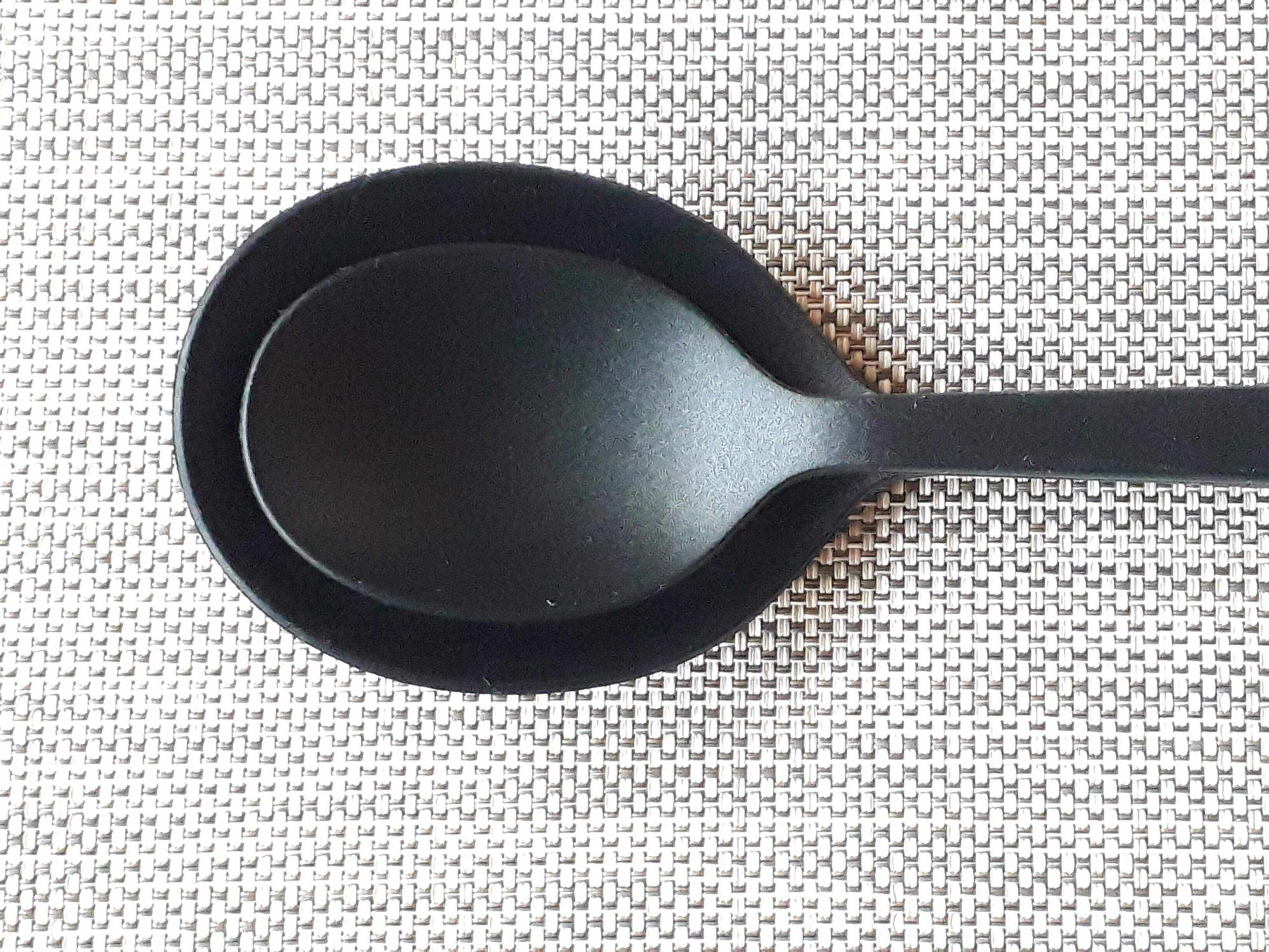 私は従来の調理スプーンを8年以上使用しており、カレーやシチュー、炒め物などをつくるときにとても重宝していましたが、以前から「もう少し小さいサイズがあれば便利なのに」と思う場面がたまにありました。口が小さめの器に入れるとき、お弁当のおかずづくりで小さいフライパンを使うときなどです。