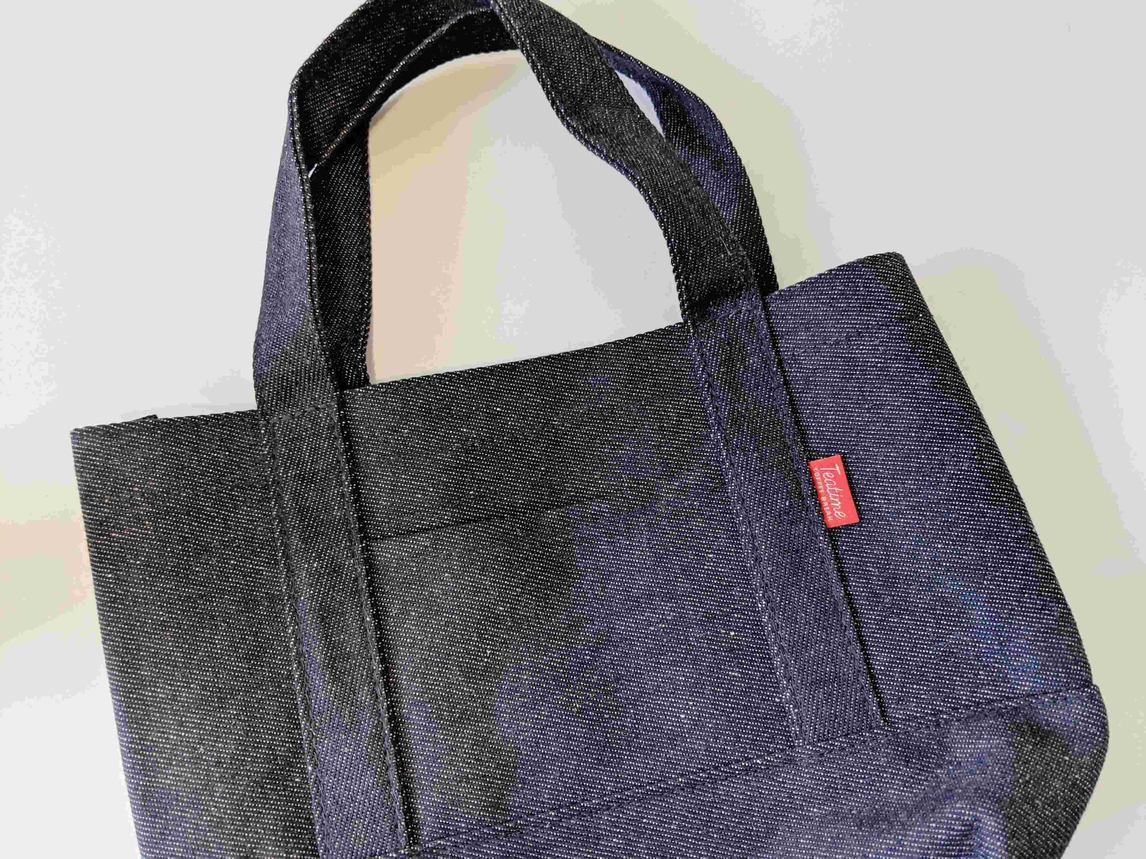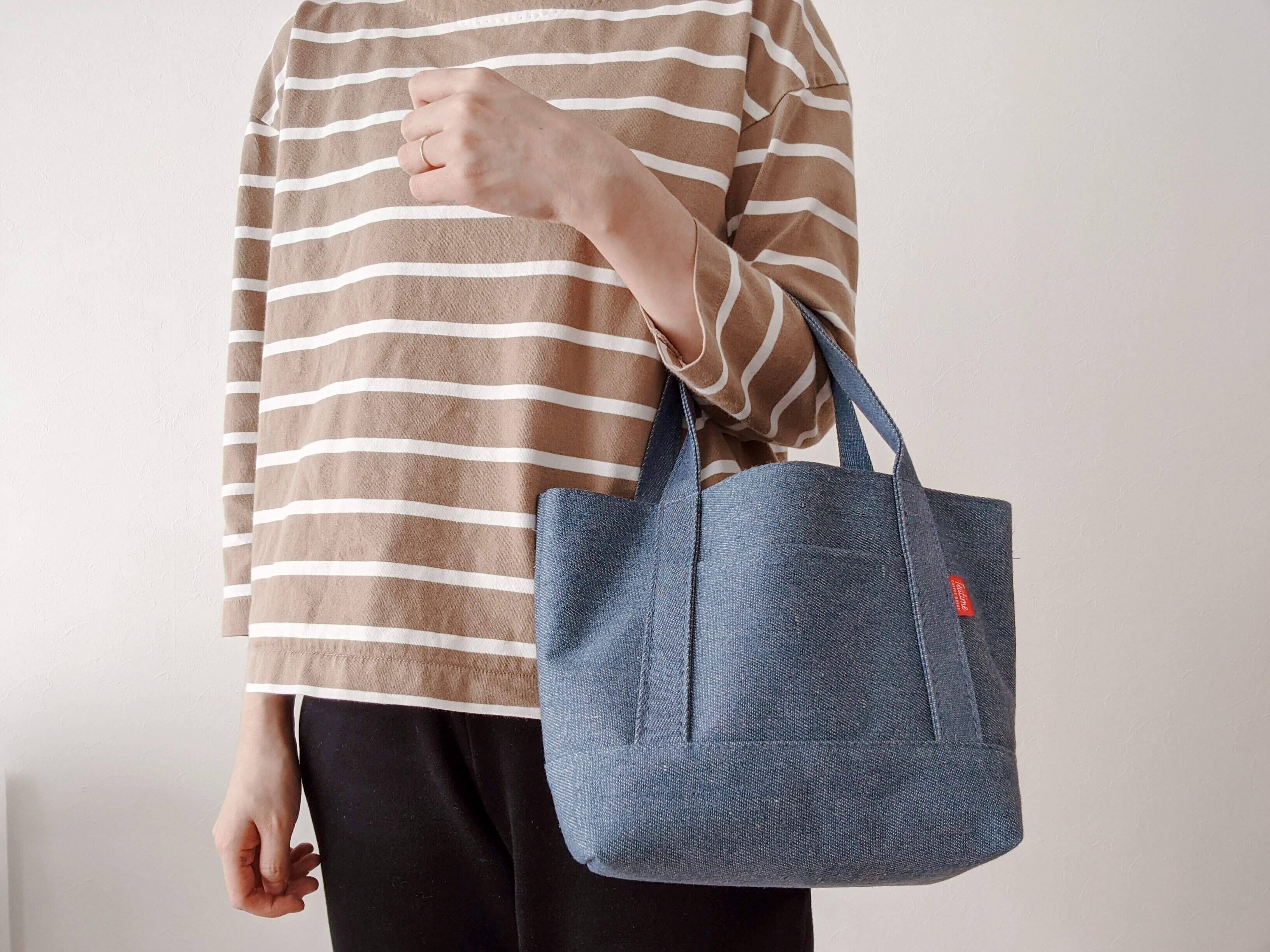 スーパーなど”ちょっとそこまで”行くために高いものは持ちたくない、でも明らさまに安っぽく耐性が弱いものも嫌、というときにDAISOの200円デニムトート、最適です!