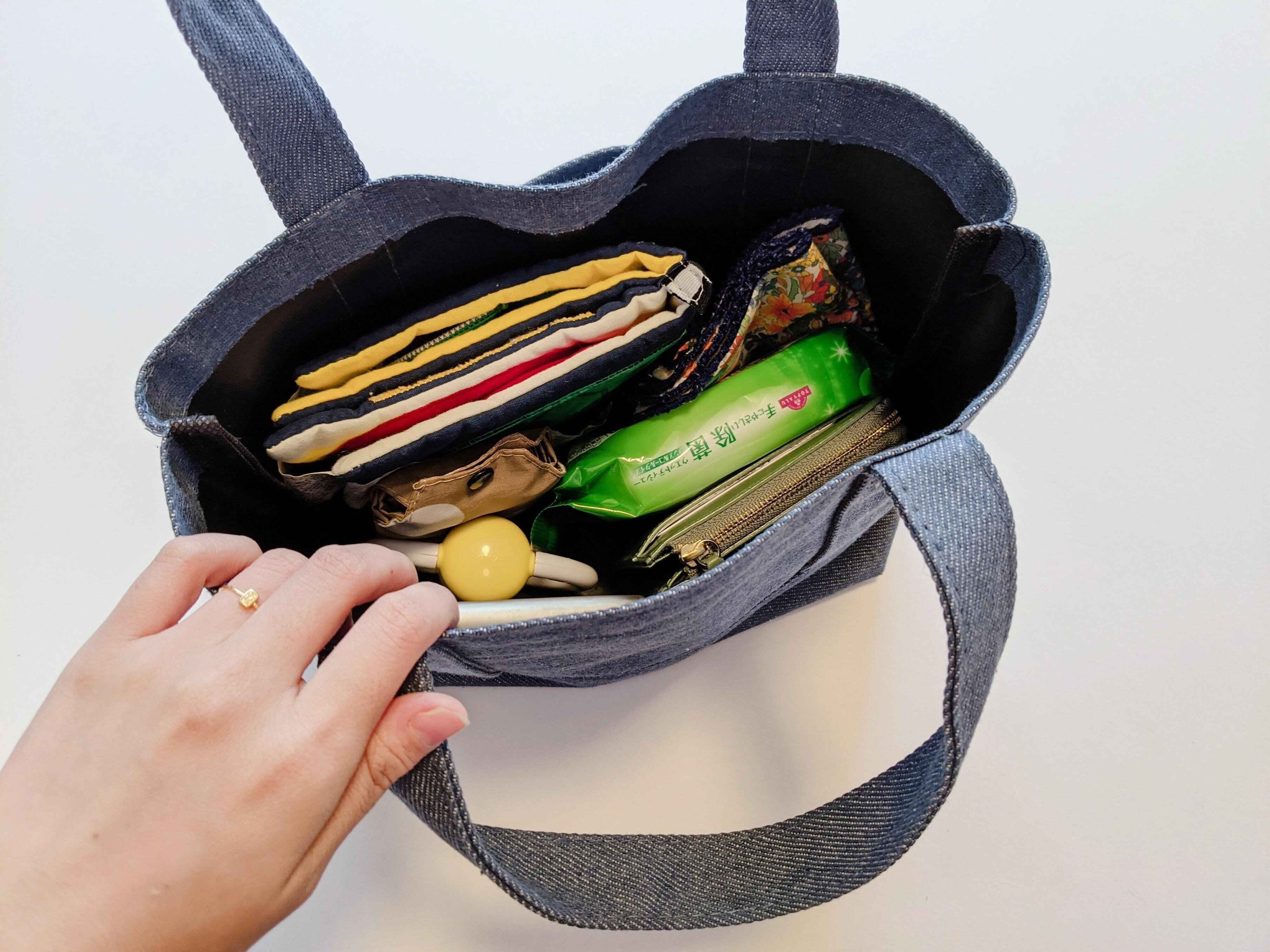 底の深いバッグだとレジでお財布を出すときに奥まで手を伸ばして探す必要がありますが、このバッグは深すぎずガバっと開くので中身を取り出しやすいのもポイントです。