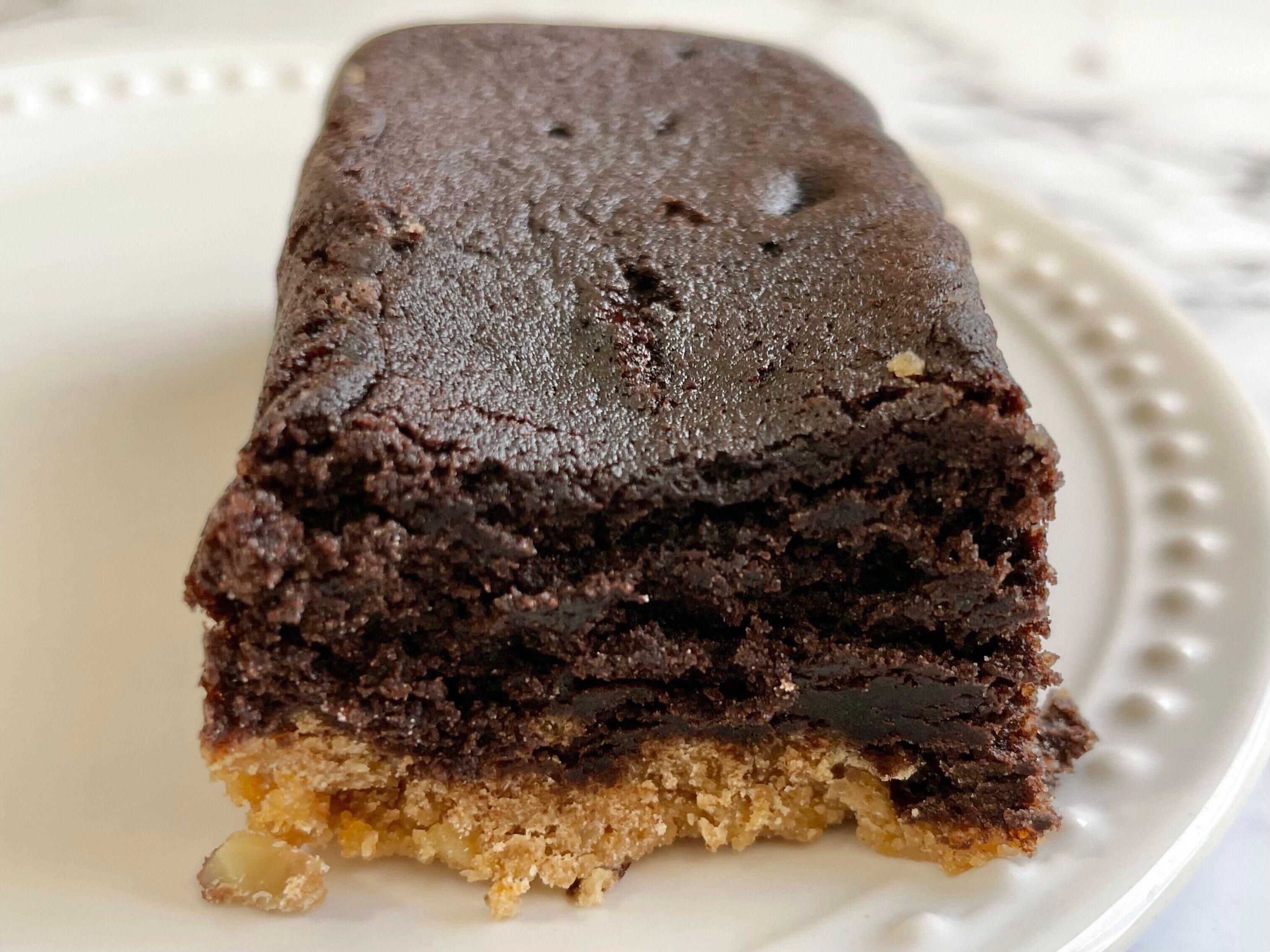 まるでブラウニーのようなしっとりさ。フォークで切るとほろほろと崩れていきます。くちどけがいいのでたべやすいです。 刻まれたくるみが香ばしくてアクセントになっていて、いいですね。