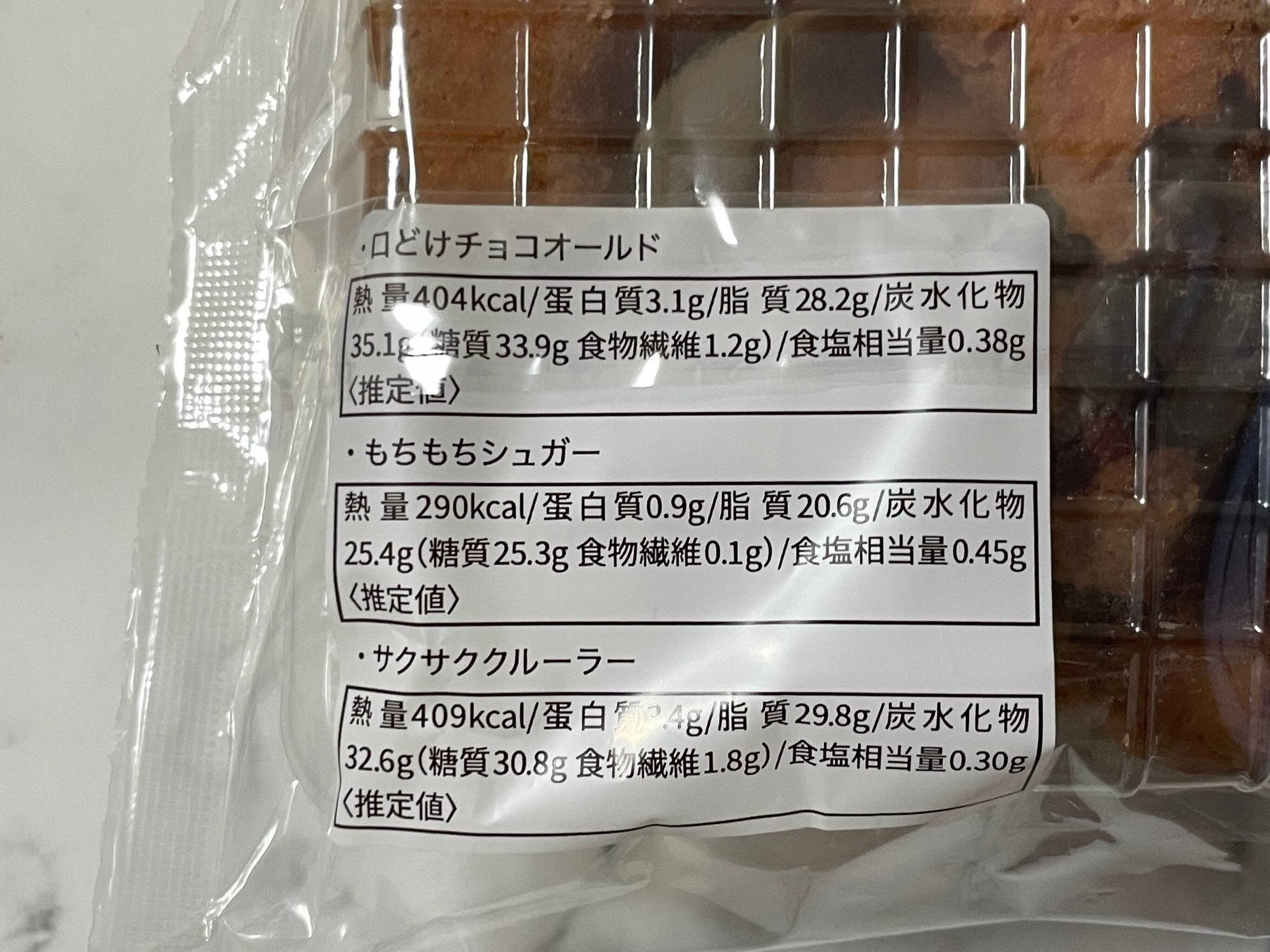 もちもちシュガー以外はチョコレートを使用してますし、納得いくカロリーですね。