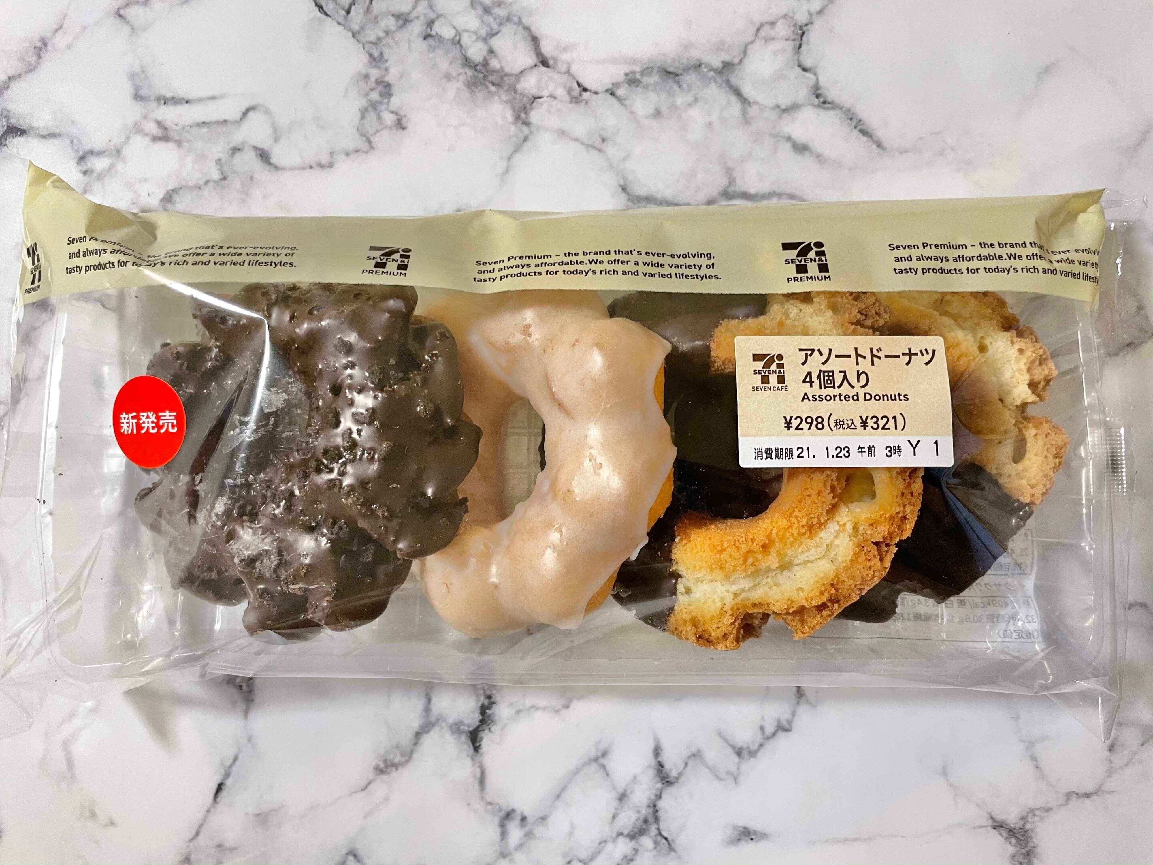 そんな中セブンイレブンへ買い物に行くとベーカリーコーナーにあったのは"アソートドーナツ4個入り"。