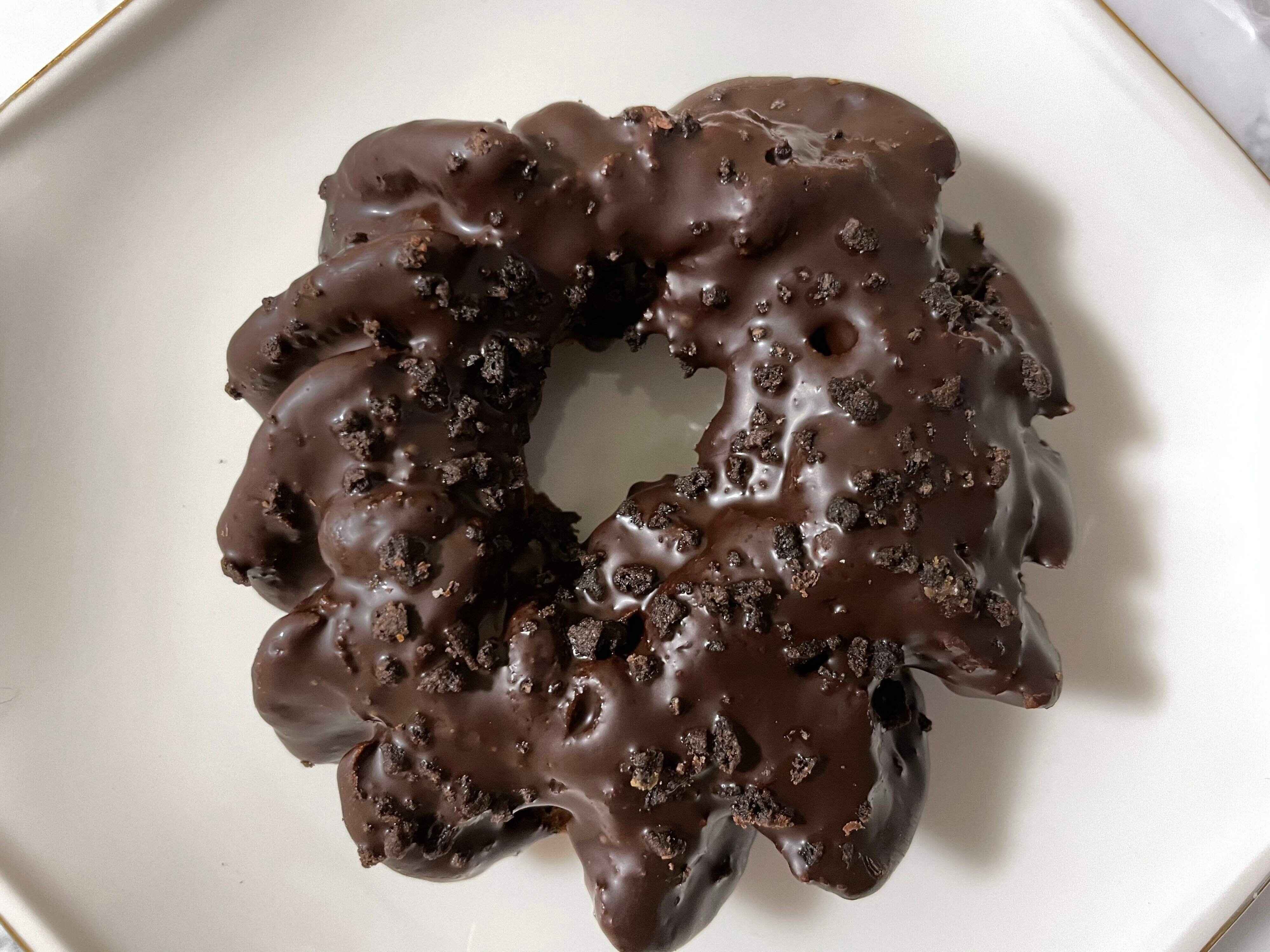 前面にチョコレートがかかってますが、おもったよりビターな味わいで大人向けです。