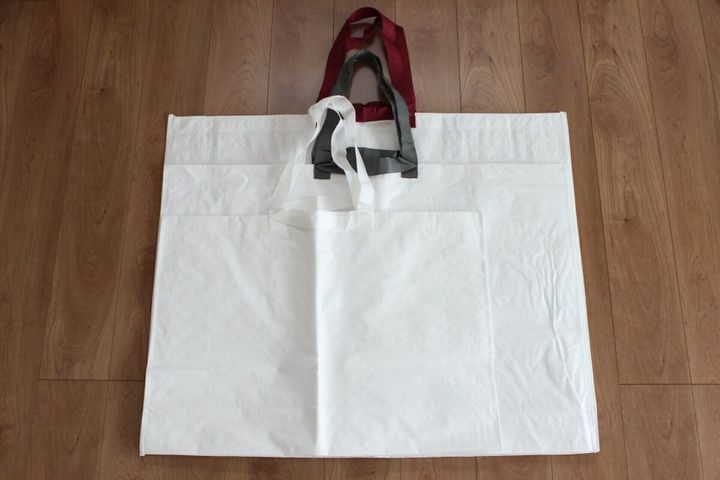 DAISOマルチバッグはポリプロピレン製で強度があり、ファスナーもついているため、中身が飛び出しません。エコバッグとしての用途以外にも、洋服の収納用バッグとしても使うことができます。