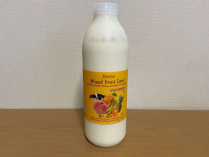 桃やオレンジ、バナナ、パイナップル、みかんの5種類の果物が入っているラッシーで、とろりと濃厚な口当たりとフルーツの甘酸っぱさや風味を感じることができます。