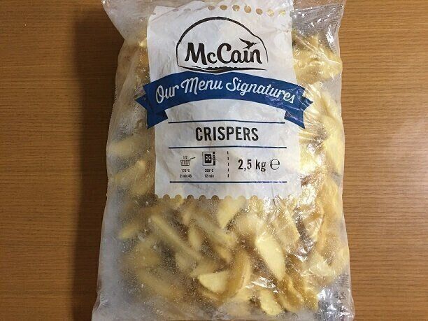 「マッケインクリスパーズ」は2.5kg入りと大容量のフライドポテトです。V字型にカットされたポテトは揚げた後、シンプルに塩を振って食べるととてもおいしくいただけます。