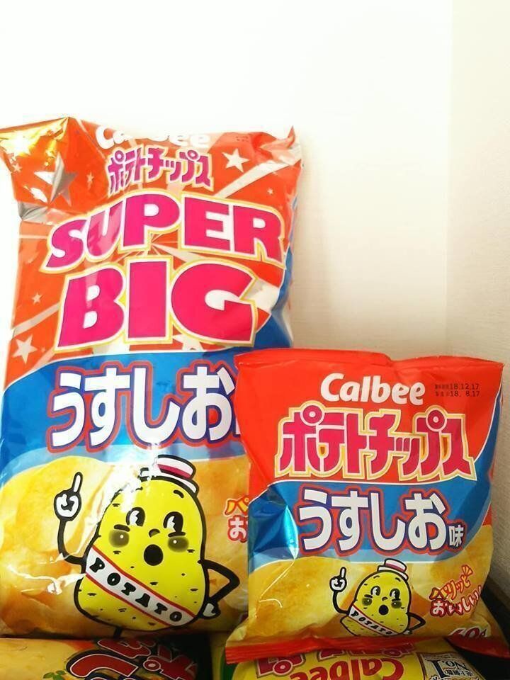 カルビーの「ポテトチップスSUPER BIG」は、国産のポテトチップスは500gも入っていてお買い得なためおすすめの食べ物です。通常商品が約60gなのに対し、コストコのものは500gも入っています。