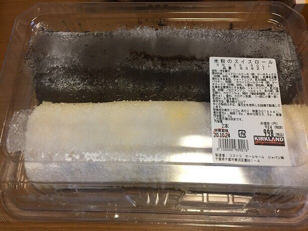 「米粉のスイスロール」はコストコの定番人気商品です。プレーン生地の大きなロールケーキとチョコレート生地の大きなロールケーキが2本入っています。