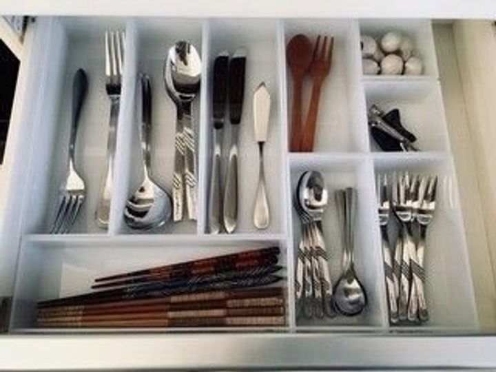 ダイソーのシステムボックスは、シンプルデザインが特徴です。カトラリー収納に向いていて、フォークやナイフ、スプーンなどを分けて整理できます。