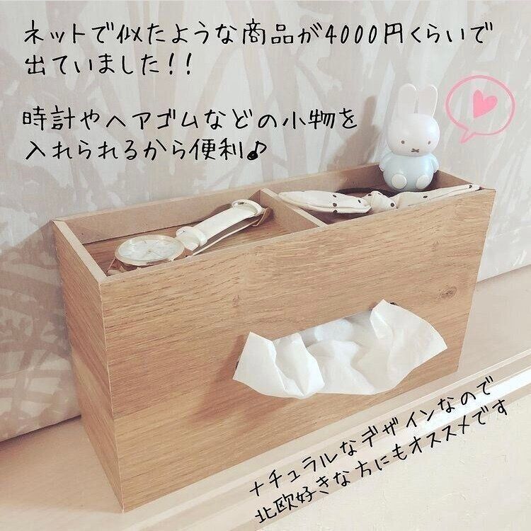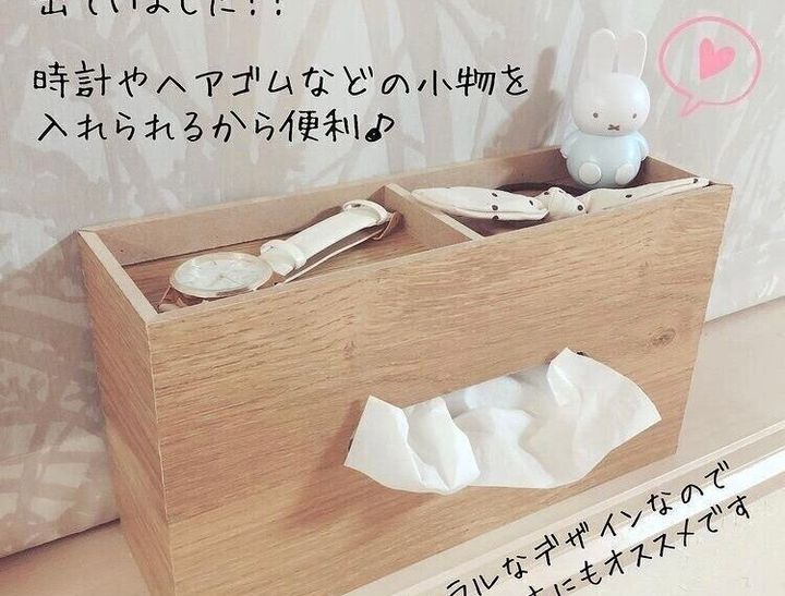 ダイソーのティッシュケースには、木製で小物置きがついているものがあります。
