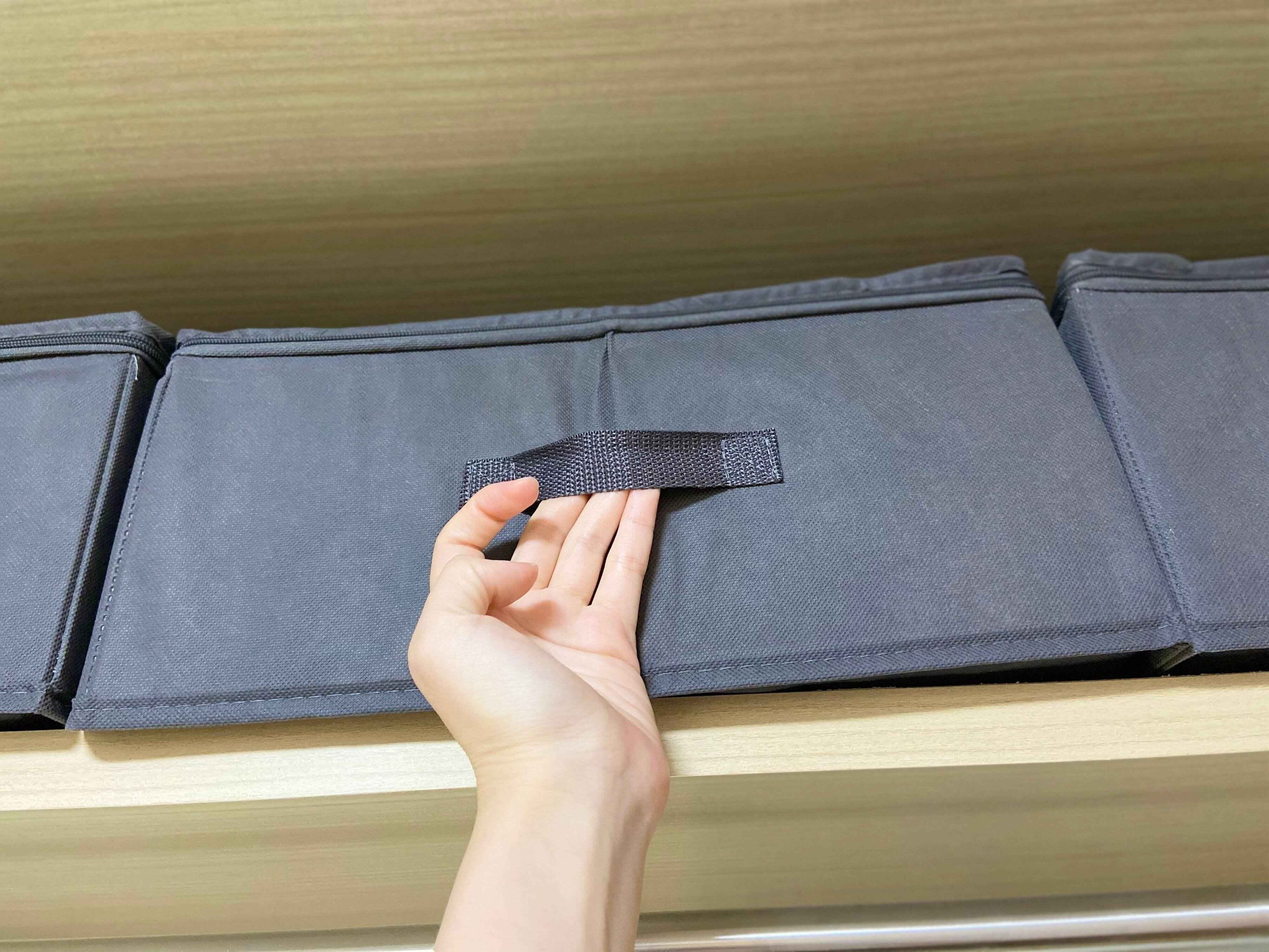ダイソーにて400円程度で販売されているベッド下収納は、フタがついている収納ケースです。IKEAのSUKUBB(スクッブ)に似ているデザインで、黒とグレーの2色があります。