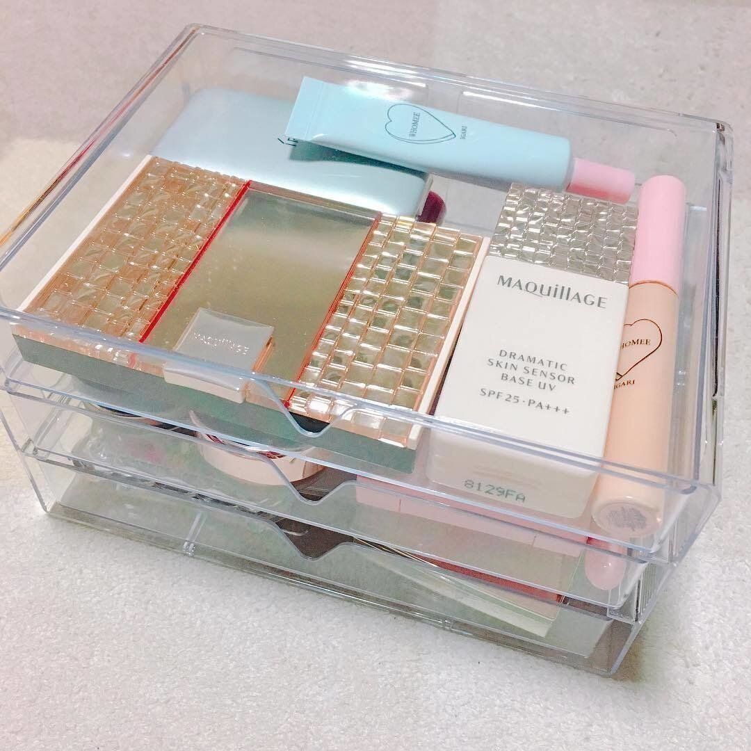 アクリルケースは3段の引き出し式になっていて、重ねて使うこともできます。