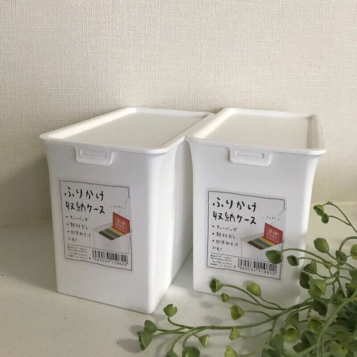 小袋のふりかけを収納できるケースです。ふりかけを収納するケースですが、顆粒だしやかつお節などを収納するのにも適しています。また、ティーバッグなどをしまうのにも便利でしょう。