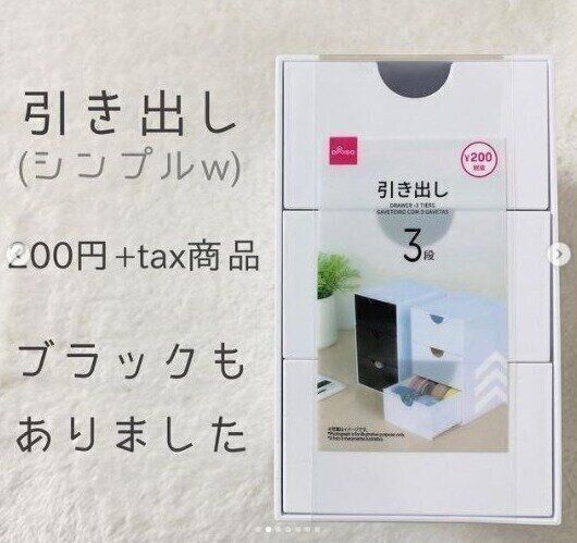ダイソーの3段収納ケースは白・黒の2色展開で、デスクやラック上の小物収納に向いています。