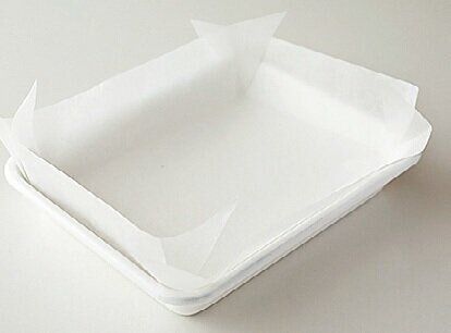 バット(15.5×12.5cm〈手札サイズ〉)にオーブン用シート(19×15cm・四隅を斜めに2cmくらい切る)を敷く。