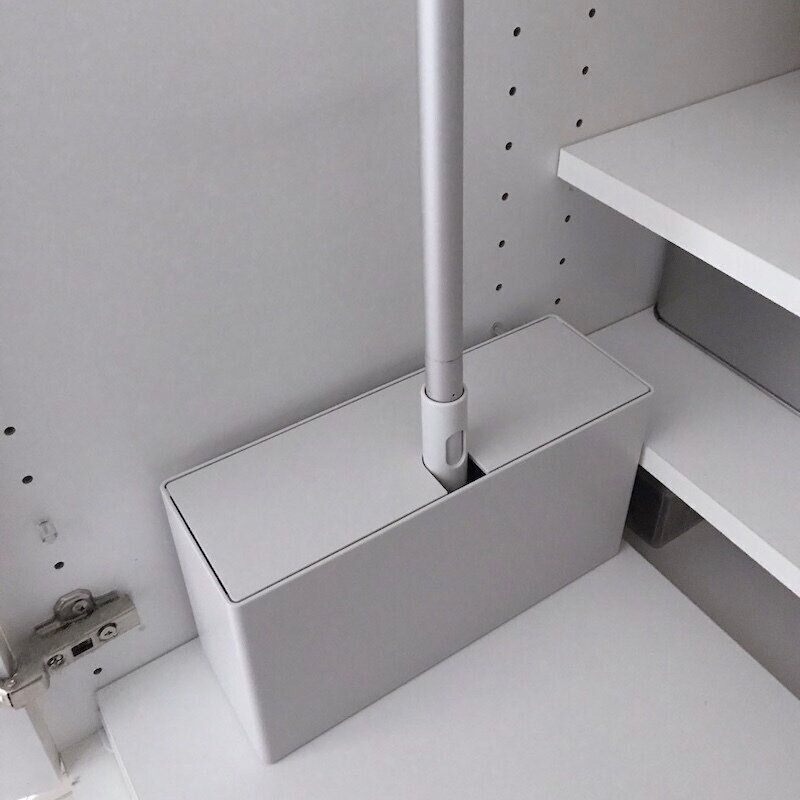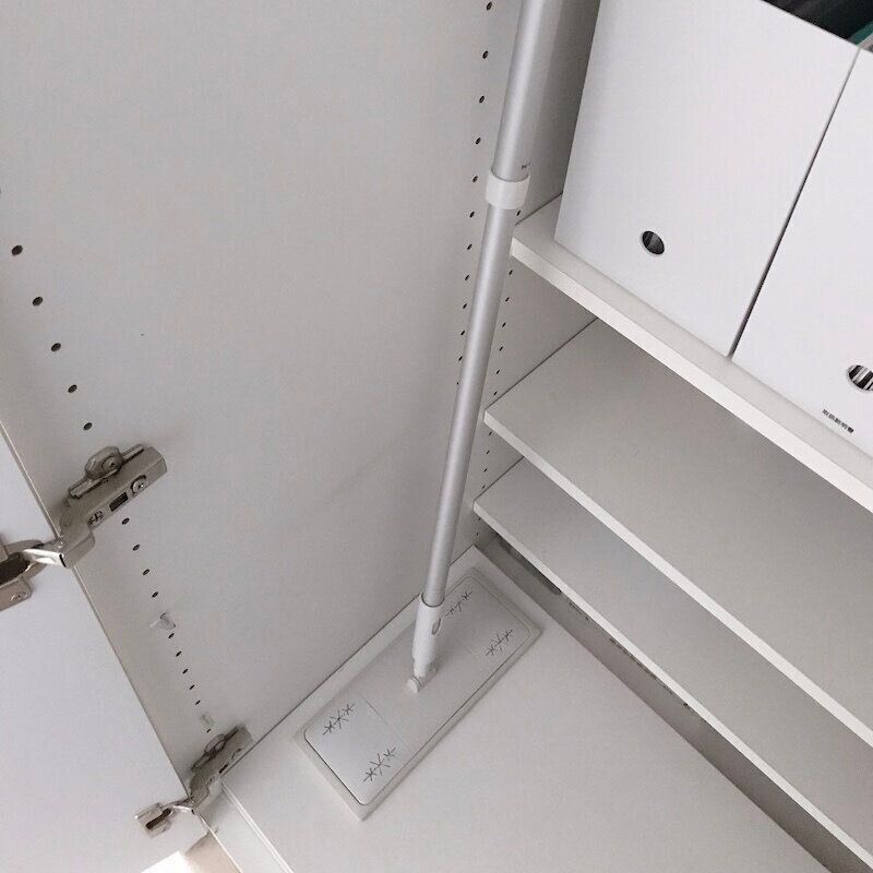 これまでは、フローリングモップは生活感が出てしまうので、とにかく隠して収納したい!と思い、扉つきの収納のなかに立てかけて収納していました。