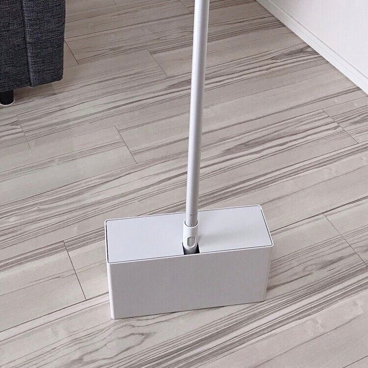 フローリングの床掃除も、この収納ケースに入れて立てかけておけば、さっと取り出して掃除ができます。片手で出し入れしやすいのもおすすめポイントです。