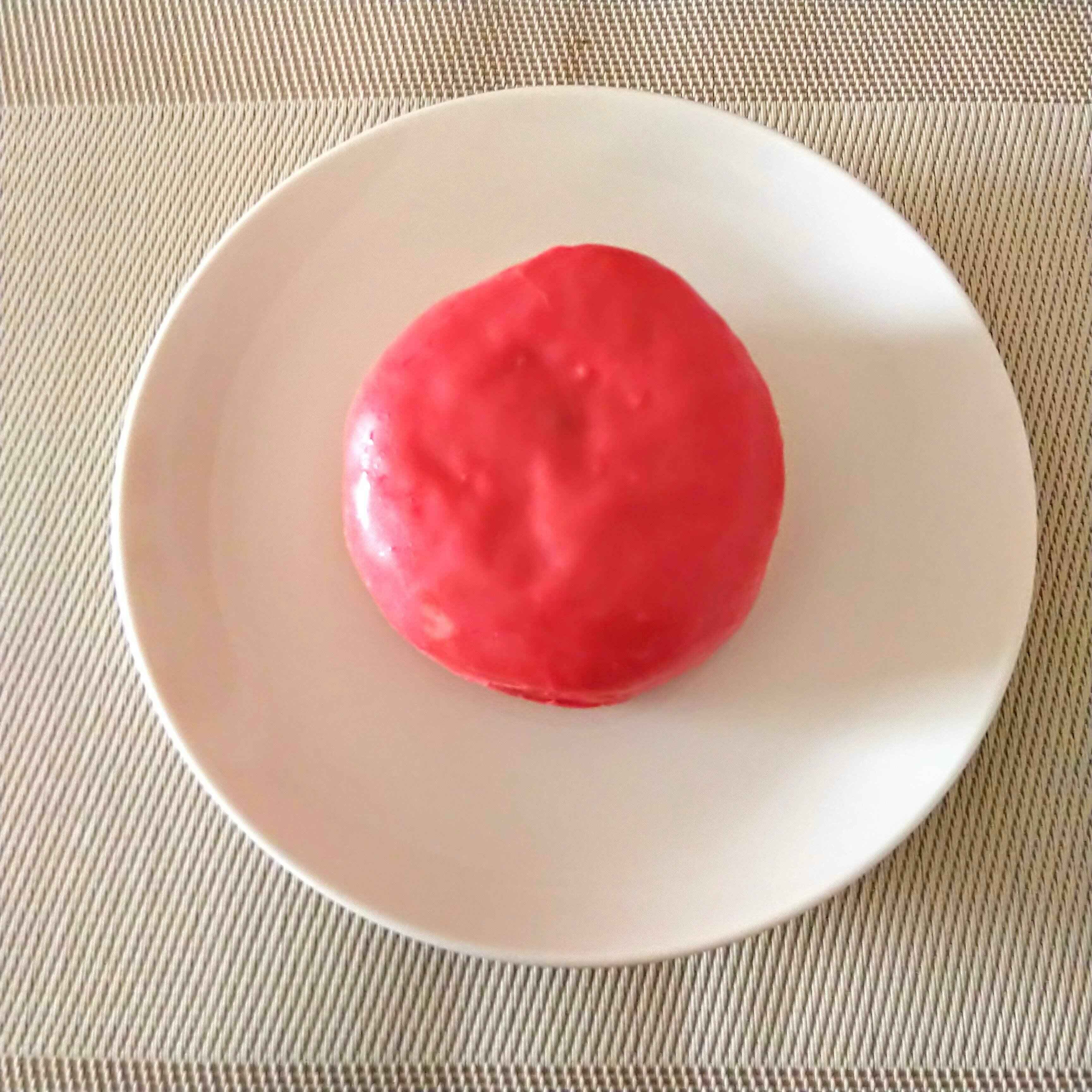 中身はいちご味のドーナツです。実際にはドーナツというよりはパンに近い感じ。コアドーナツのネーミング通り、中にいちごソースが入っていてコアのようになっています。