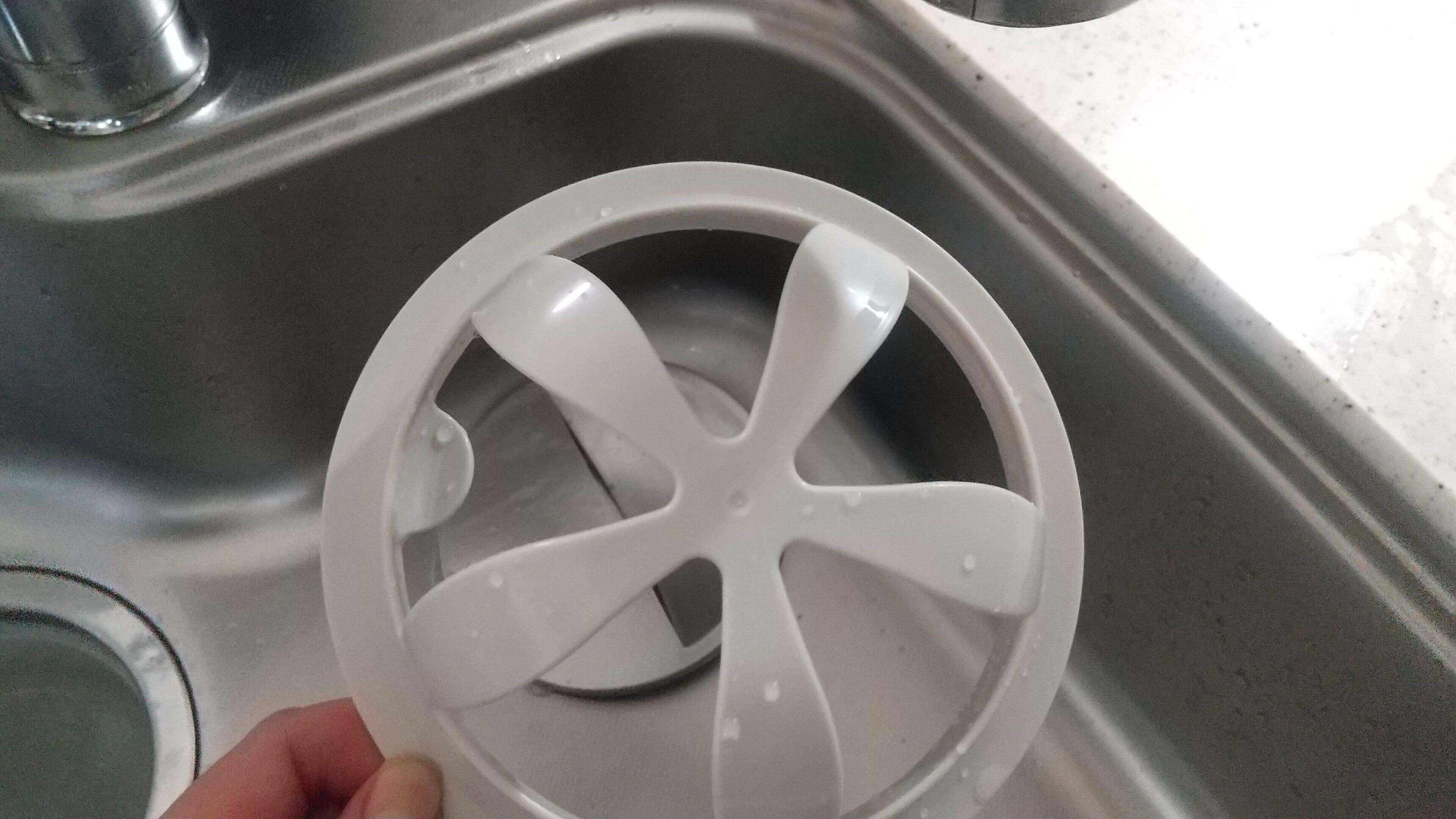 本体はお花のようなちょっと不思議な形をしていますが、一般的な排水口ホルダーと違って細かい網目がない形状なので、汚れが溜まりにくくなっています。
