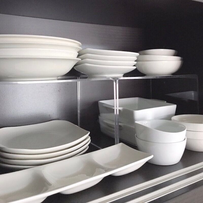 収納スペースが上がるだけでなく、お皿の出し入れがしやすくなり見た目もすっきり!