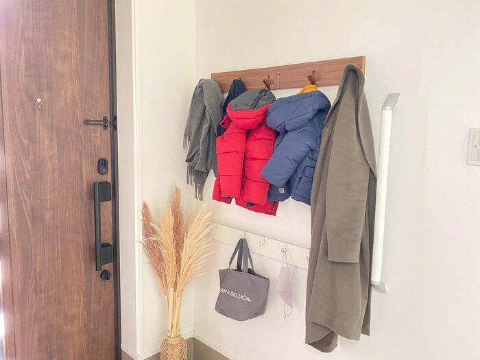 この位置なら帰ってきてすぐアルコール消毒もでき、万が一アルコールが垂れてしまったとしても、土間なので安心です!