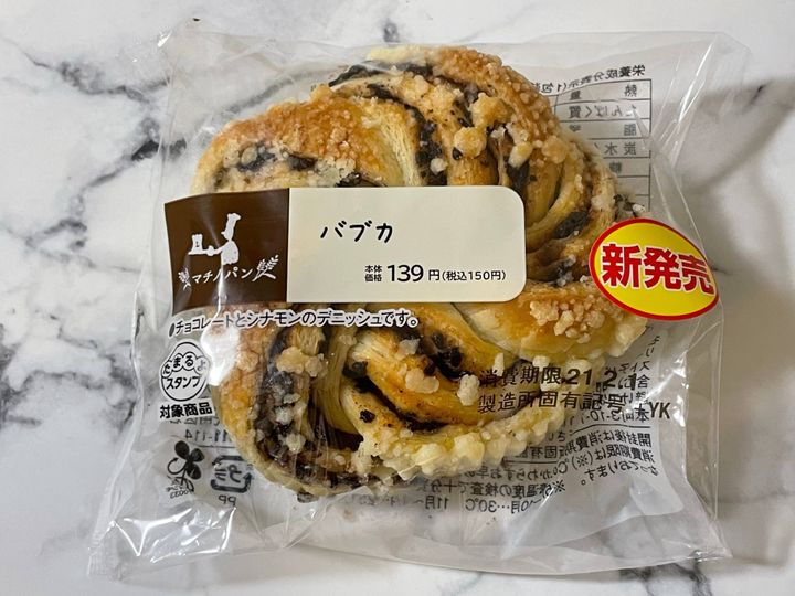 バブカはニューヨークで人気に火がついた、甘いチョコレート味のペーストが巻き込まれたロールパンです。ローソンで発売されたということで、早速買いに行くと残り1個でした!