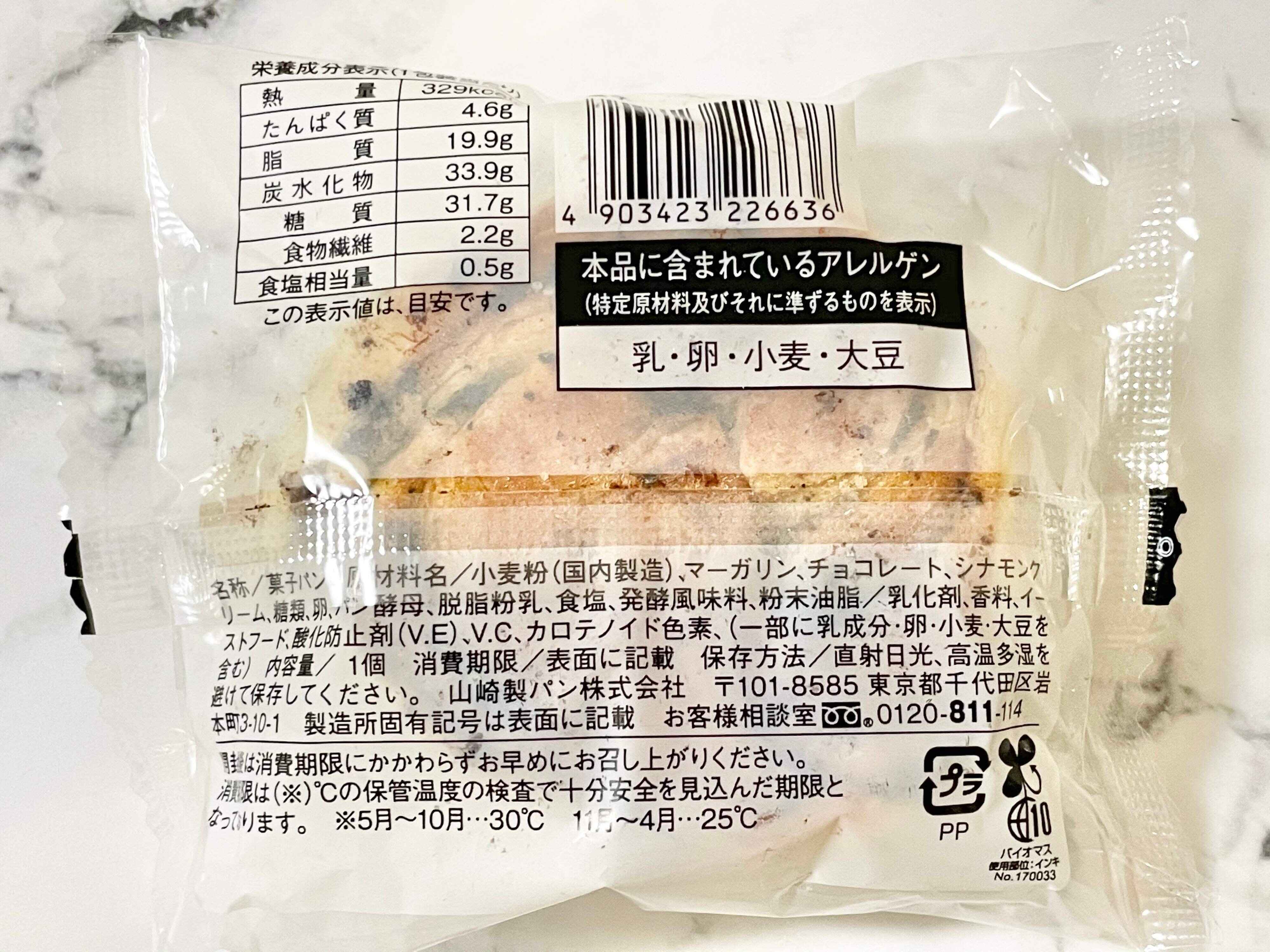 1個あたり329kcalとチョコレートが入ったパンなので妥当といったところでしょうか。