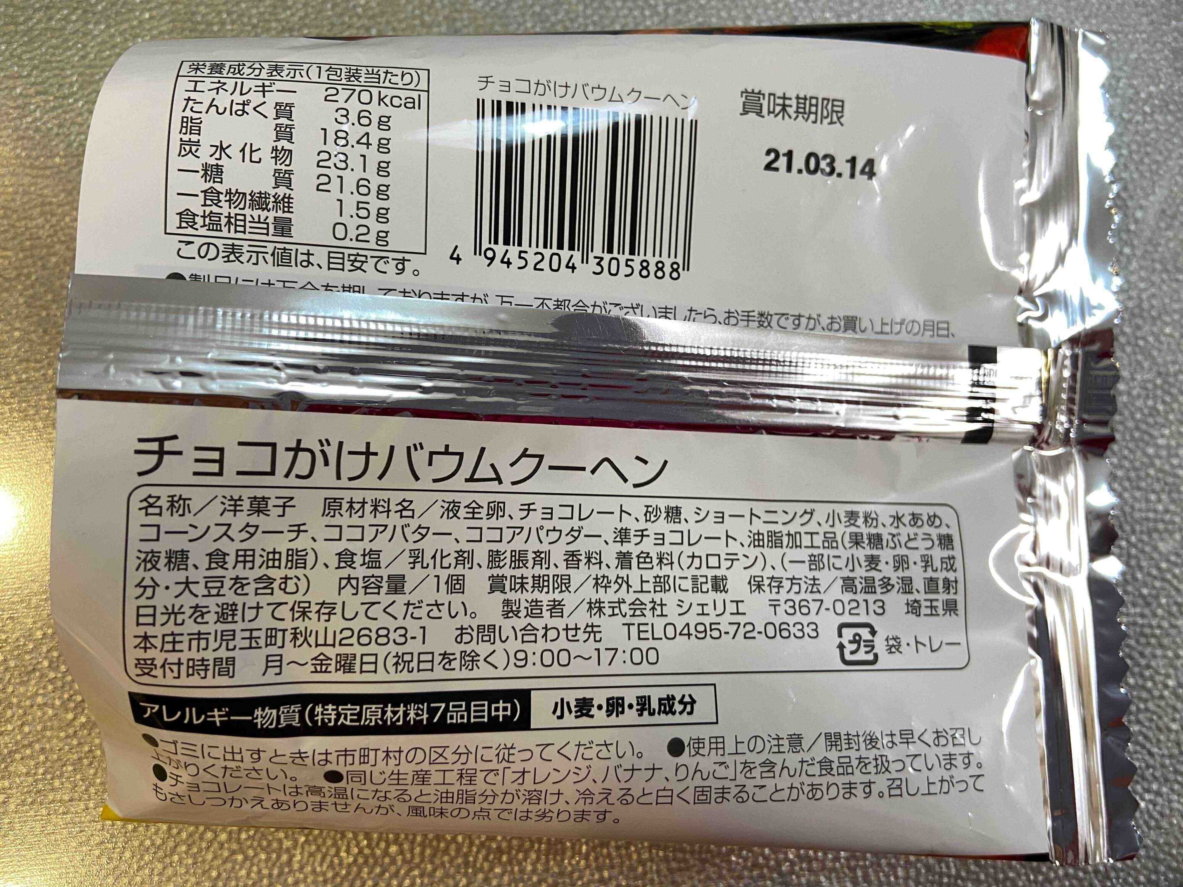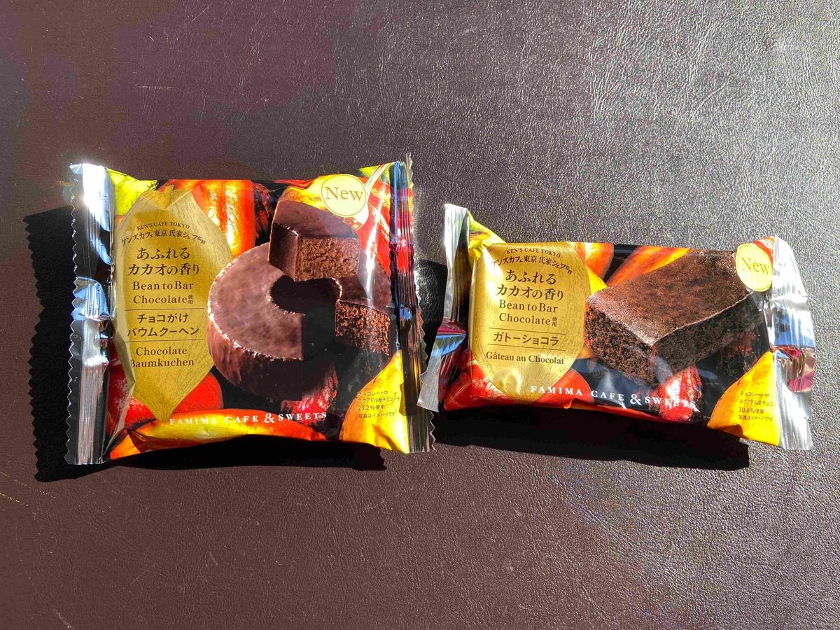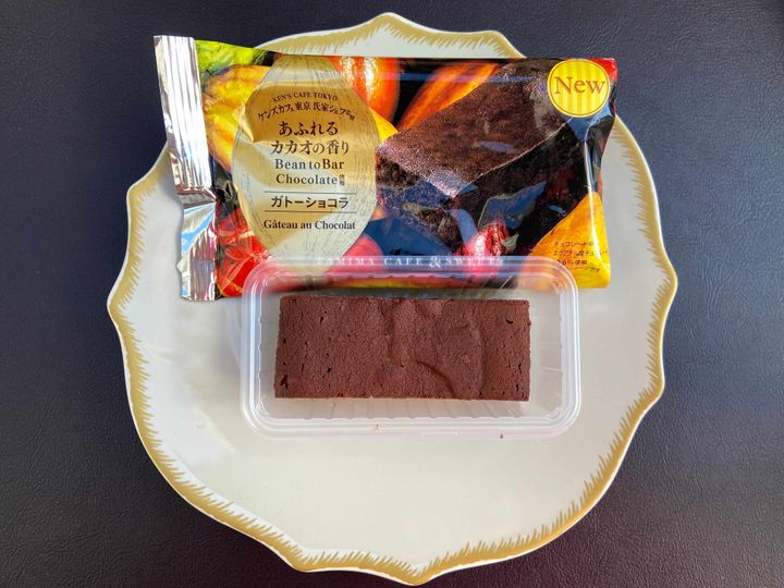 慌てて購入しに行って手に入れた焼き菓子「ガトーショコラ」(198円)と、「チョコがけバームクーヘン」(190円)をご紹介します。