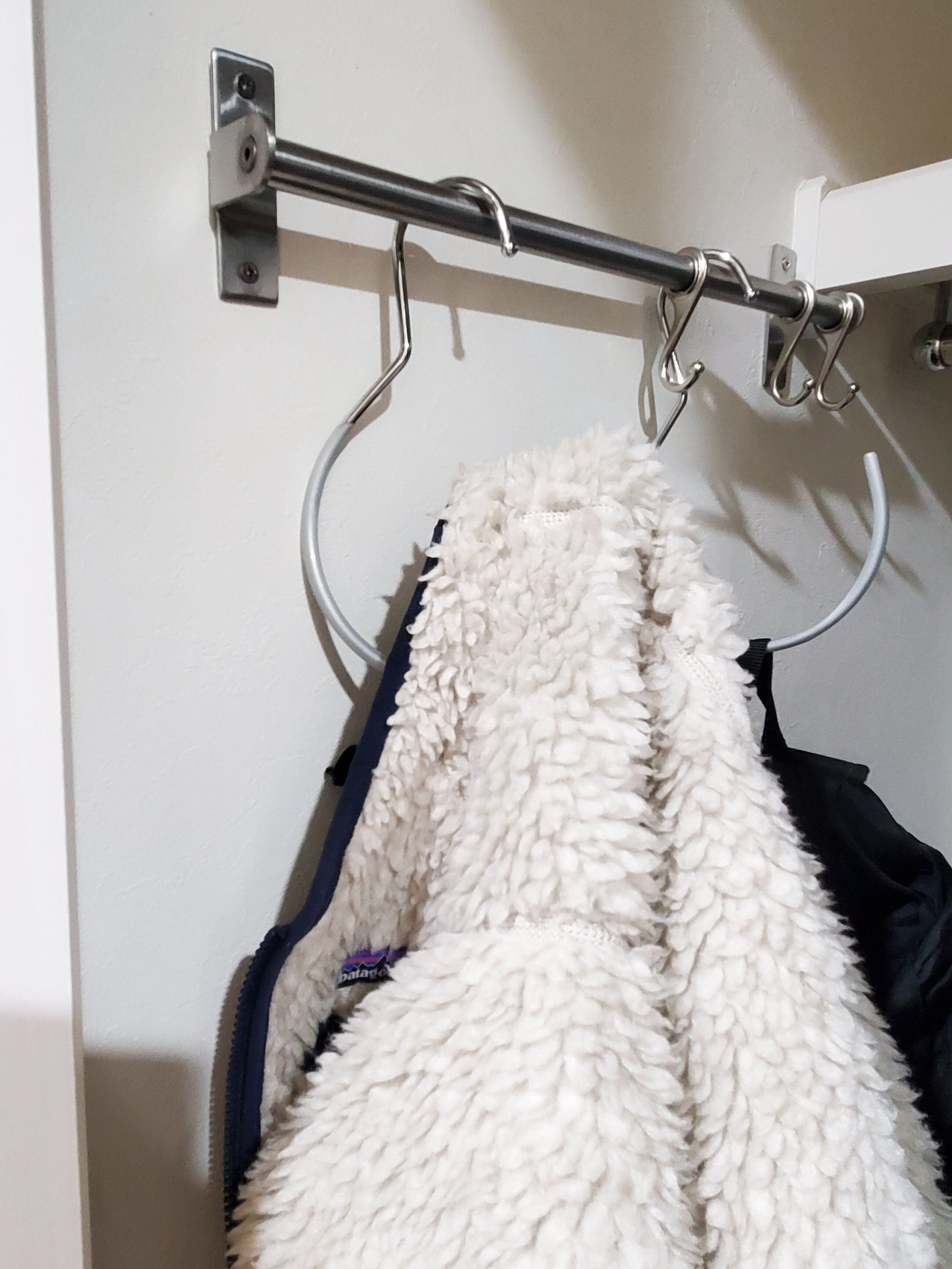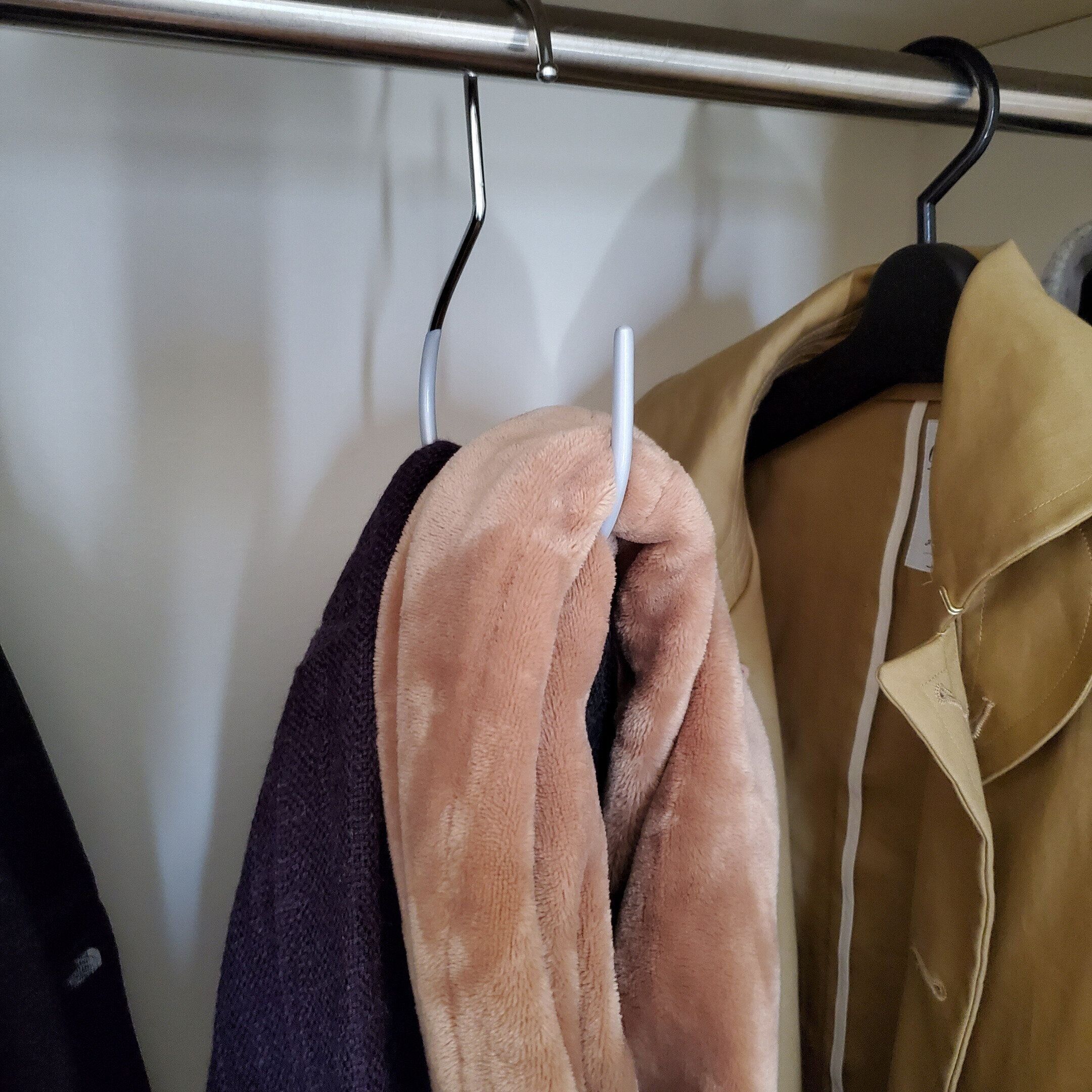 まずはマフラー、ストールやスヌードなどをひっかけています。