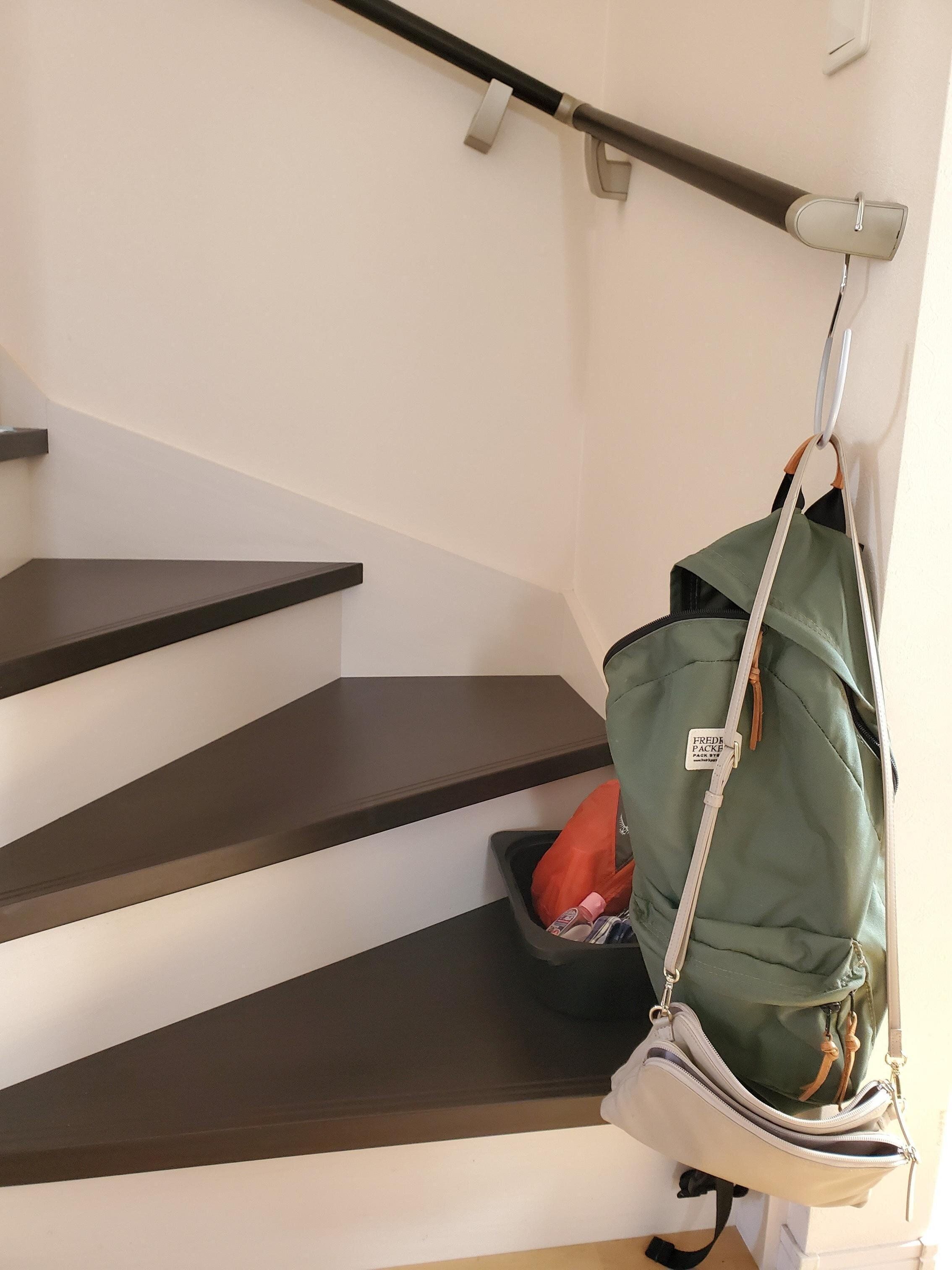 帰宅して即、中身はボックスに全出しして鞄はこのフックに引っかけておきます。