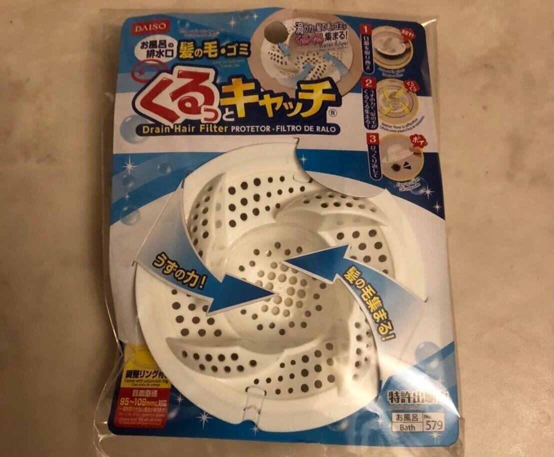 お風呂の排水溝の目皿をこれに取り替えれば、渦の力で髪の毛が真ん中に自然と集まり、あとはひっくり返してポイっと捨てるだけといううれしいアイテム!価格はもちろん110円です。