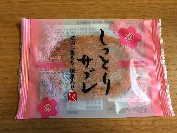 カルディで人気のもへじ商品、一見薄いクッキーのようなこちらは「しっとりサブレ」(購入時価格:130円税込)。桜のパッケージがとっても可愛いですね。