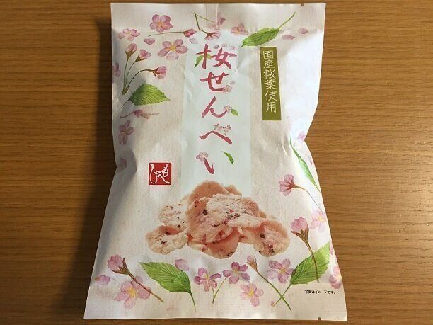 桜が満開なこのパッケージもほっこり素敵な「桜せんべい」(購入時価格:213円税込)。国産桜葉使用のお煎餅です。
