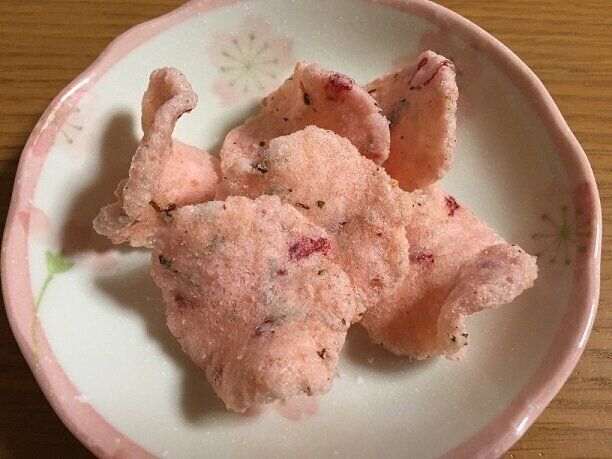 桜葉入りなのでしっかり桜の風味もしっかり感じられ、ほんのり効いた塩気に海老の香ばしさとサクサク軽い食感。絶妙なバランスでとっても美味しいです。桜の甘いお菓子もいいけれど、しょっぱいお菓子もハマる美味しさですよ♪