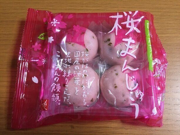 こちらは鮮やかなピンク色のパッケージ!「桜まんじゅう4個入り」(購入時価格:198円税込)。こちらも、もへじの商品です。