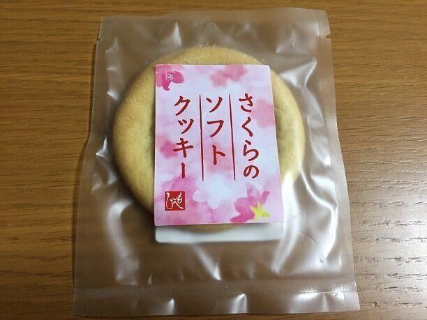 こちらはソフトタイプのクッキー「さくらのソフトクッキー」(購入時価格:118円税込)。桜葉を練り込んだ桜色のチョコレート入り!