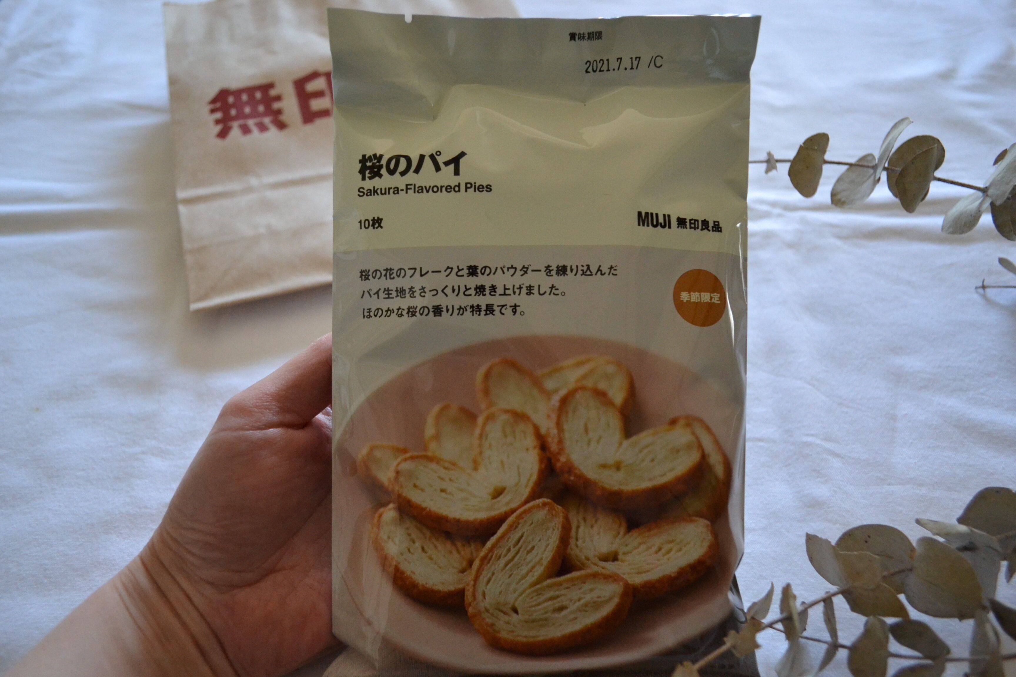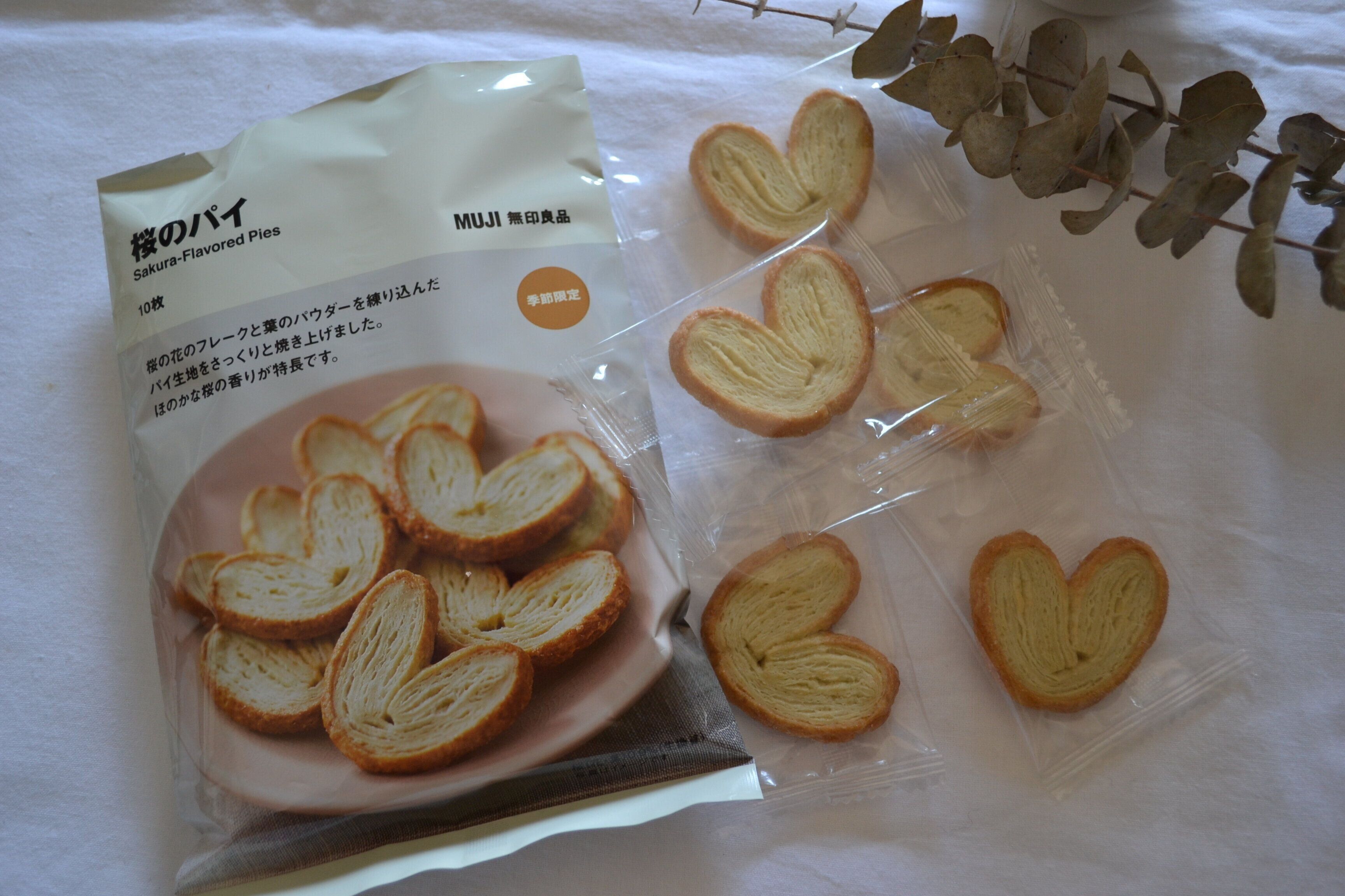 最後にご紹介するのは、無印良品の「桜のパイ」です。1袋250円(税込み)です。1袋10枚入りなので、1枚当たり25円とコスパ良いですね。