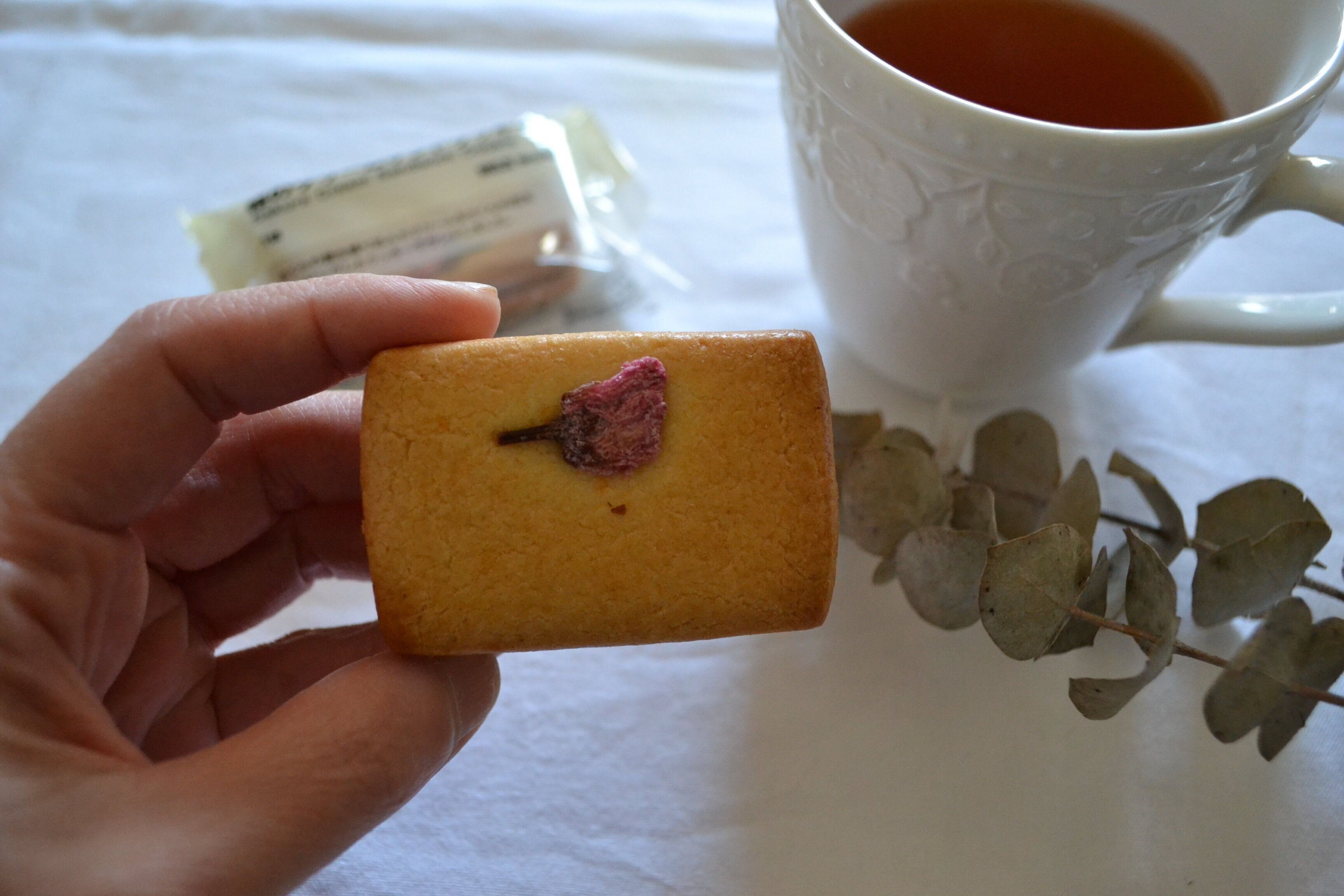 袋から開けてみると、桜の花の塩漬けがトッピングされたクッキーが出てきます。