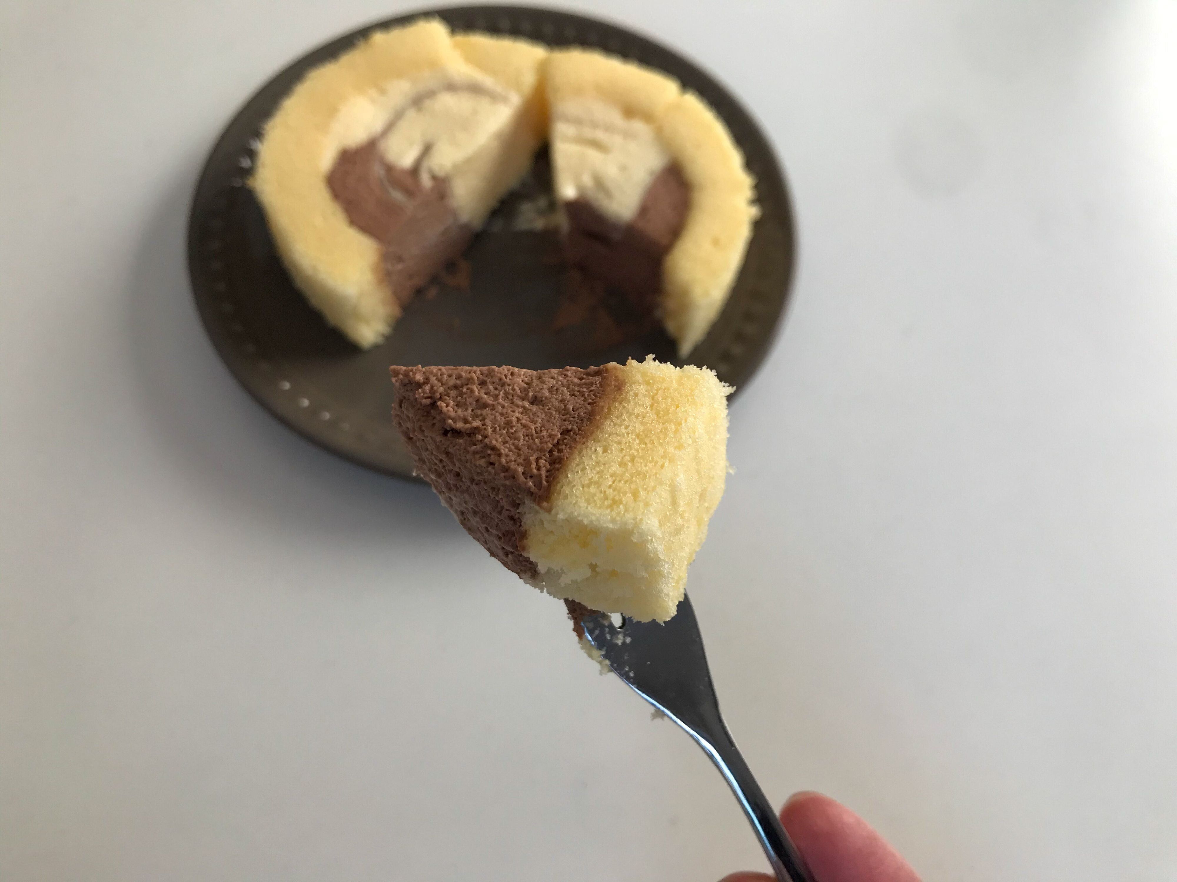 こんなクリームに工夫がほどこされたロールケーキは、つい半分にカットして断面を見たくなってしまいませんか?私は断面が見たくなってしまいました…。