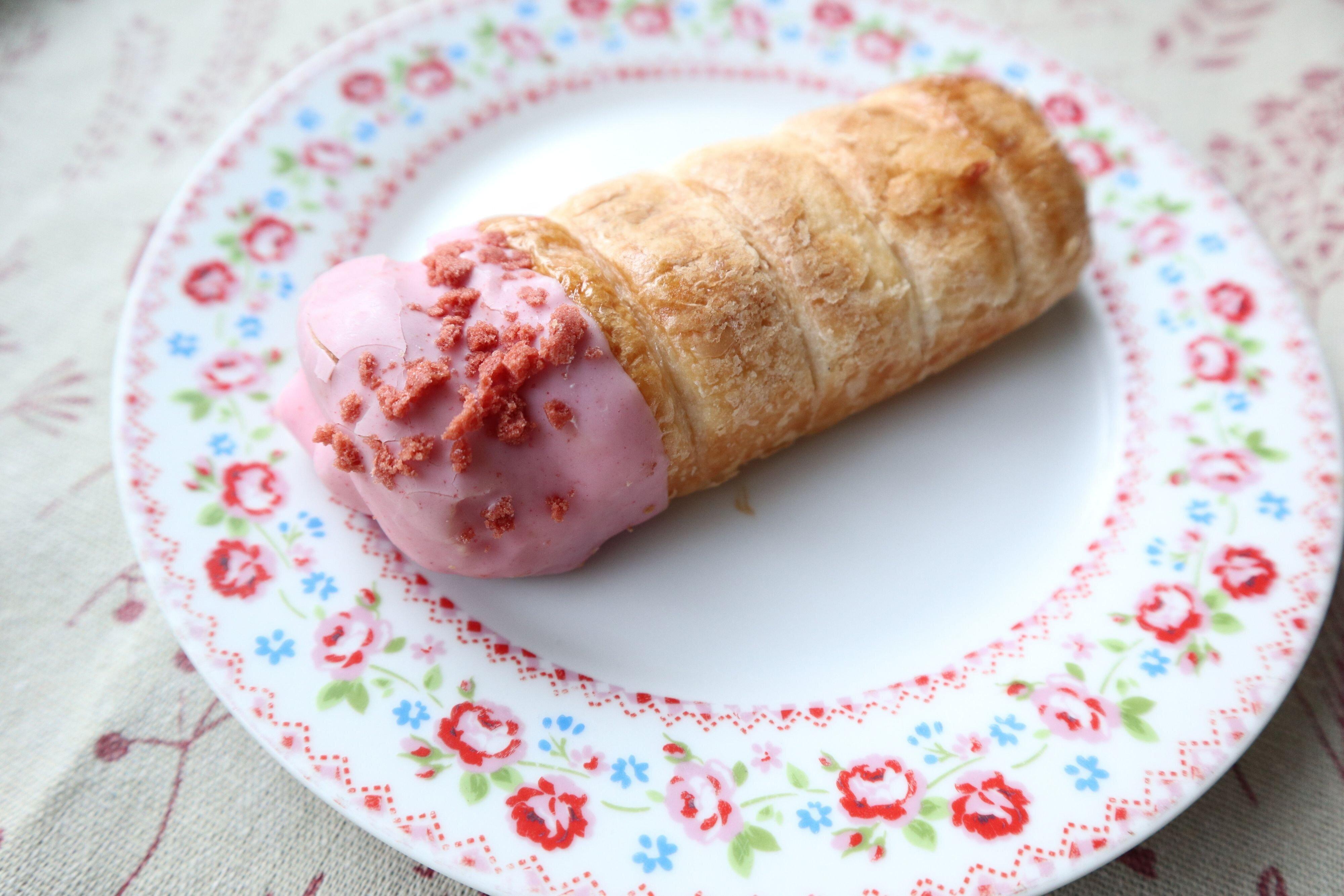 このホイップクリームが想像以上に美味しい!「ちょっとくどいかな?」と思いきやこっくりしているんだけど甘さ控えめで、いちごのホイップクリームだから甘酸っぱくて全体のバランスがとてもいい。
