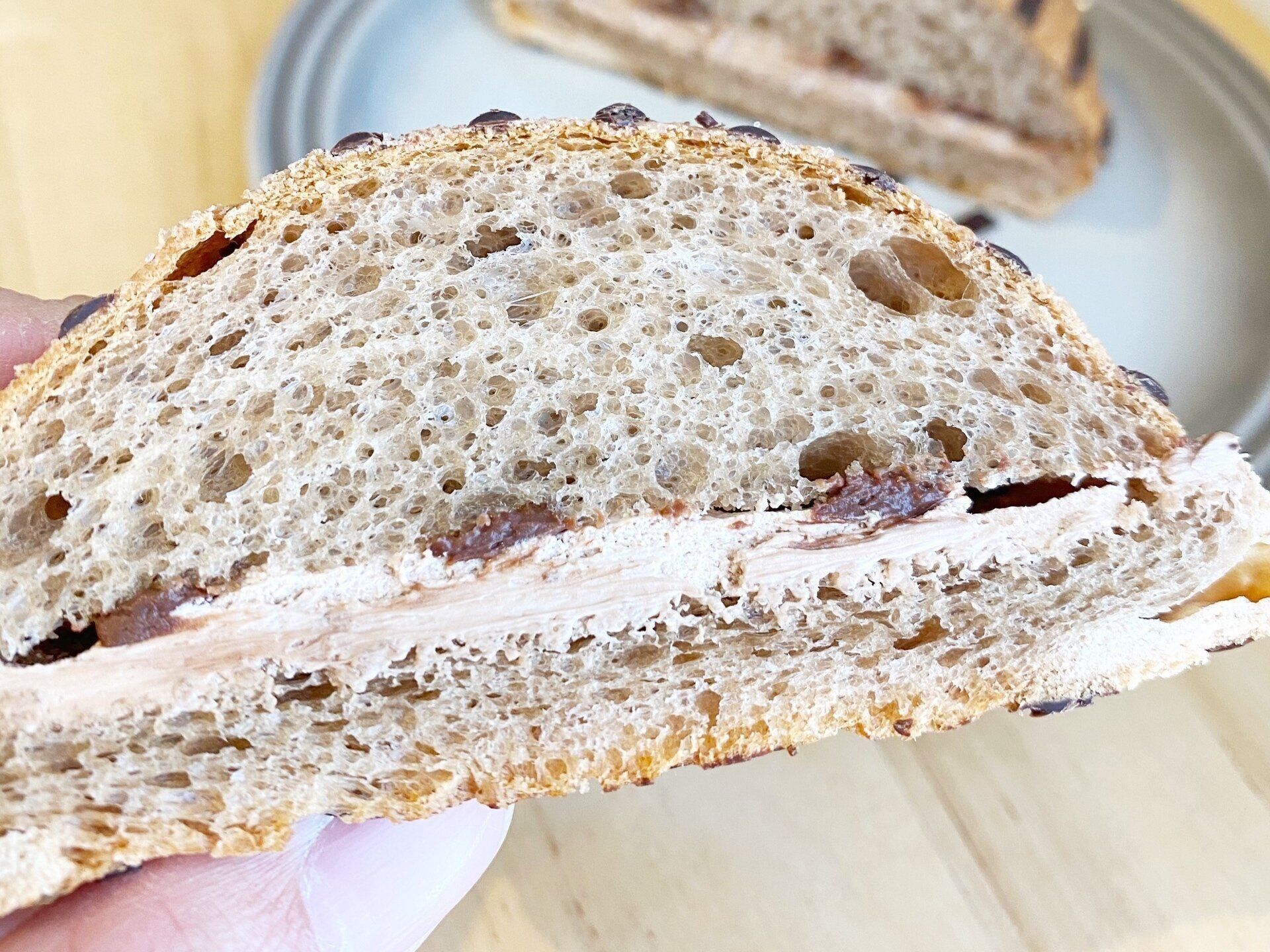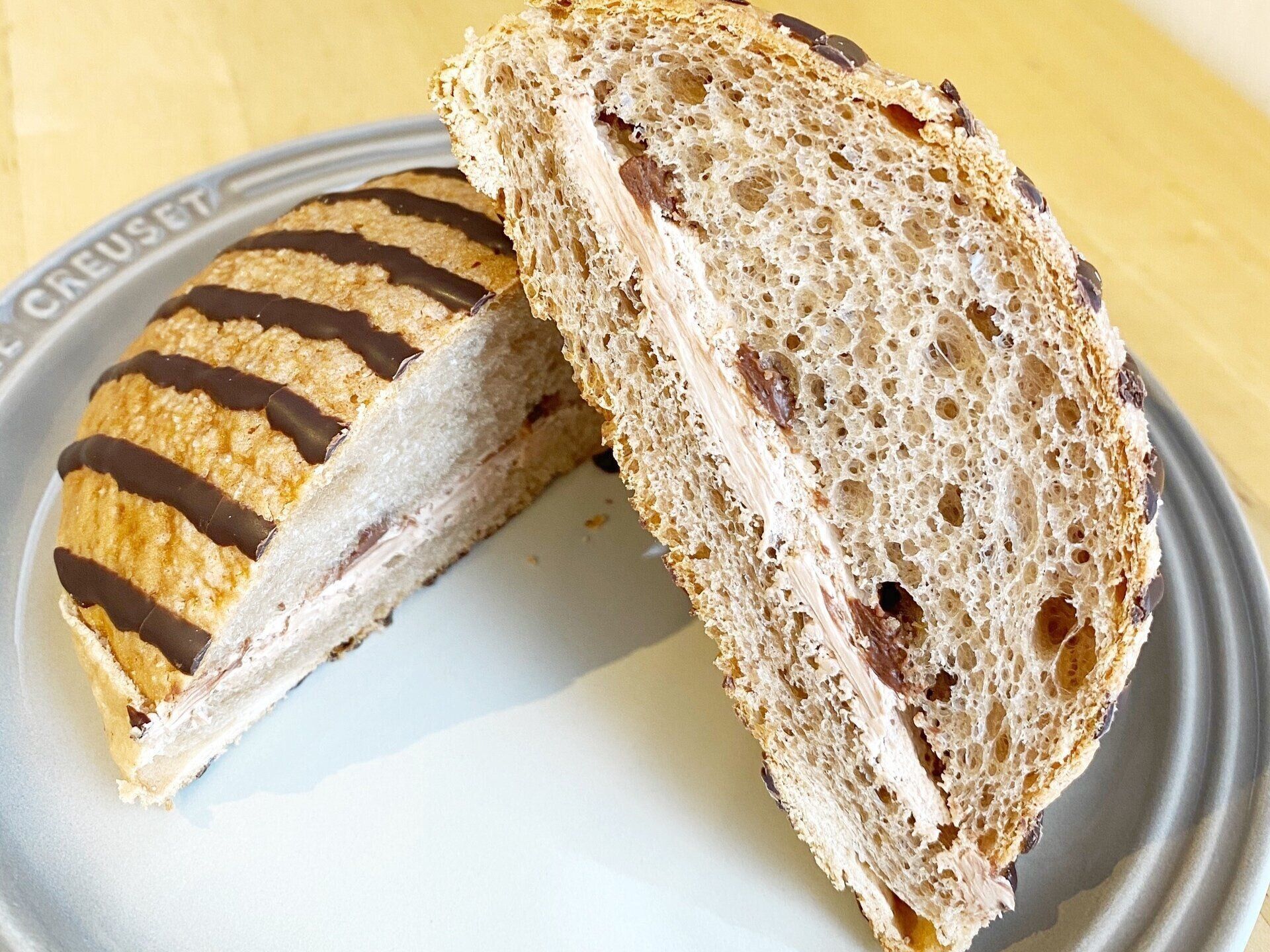 しっかりと弾力のあるパン生地は甘い2種のクリームと相性抜群!表面のクッキー生地とチョコレートとがマッチし、非常にオシャレな味わいになっています。