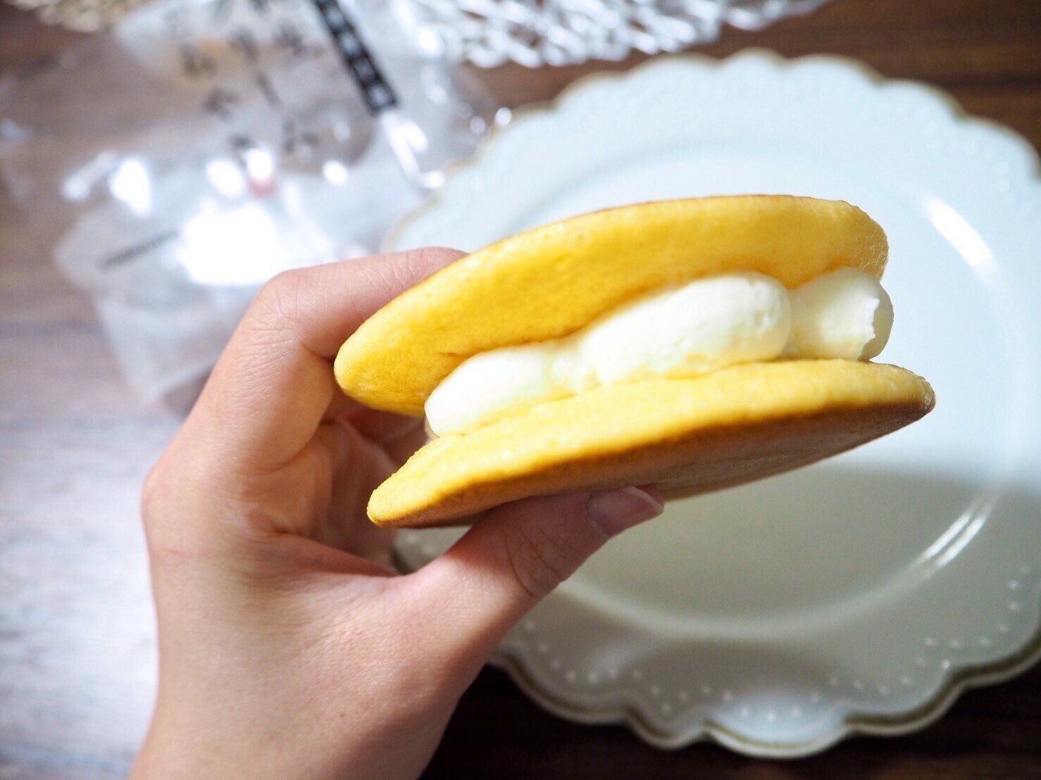 どらやきの生地の厚み、さらに真ん中に雲のようにもくもくとした形で絞られたクリーム・・・食べる前からおいしそうです。