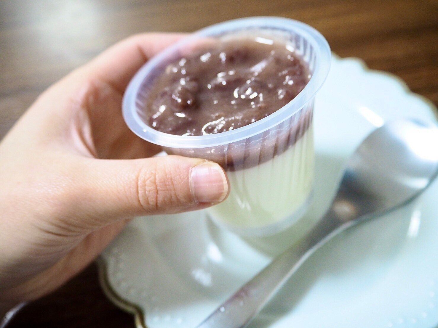 側面から見た通り、ミルクプリンの上にあんこがのっています。
