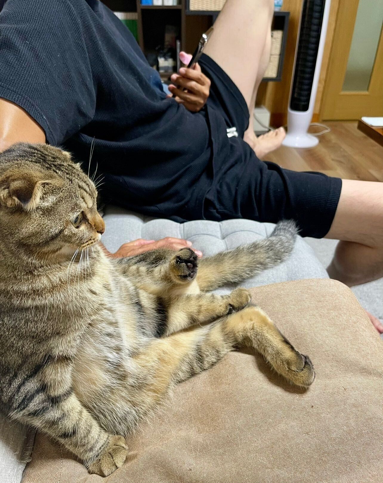 ネコちゃんが天井から生えている!?「ホラーだ」「忍者!?」クセ強な出迎え方に飼い主さんも「変な声出たわ」