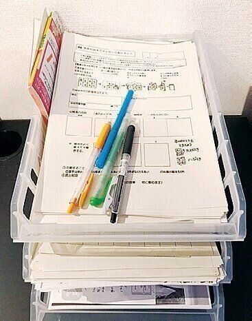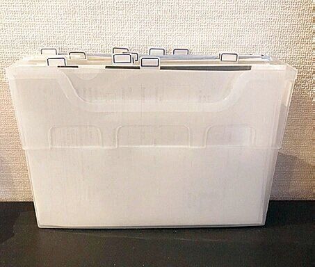 一定期間保存する物は、ファイルBOXに収納。よく見るプリントは写真を撮って、LINEで自分1人だけのグループをつくり、そこに送信。時系列に保存でき、必要な物が見つけやすい!