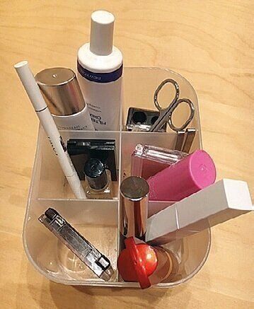 前は使っていない物まで混在し、ポーチが閉まらない状態。いらない物は処分して、使っている物だけを、使う順番に仕切りつきのケースに立てました。使った物を元に戻すのも超簡単だから、もうゴチャつきません。