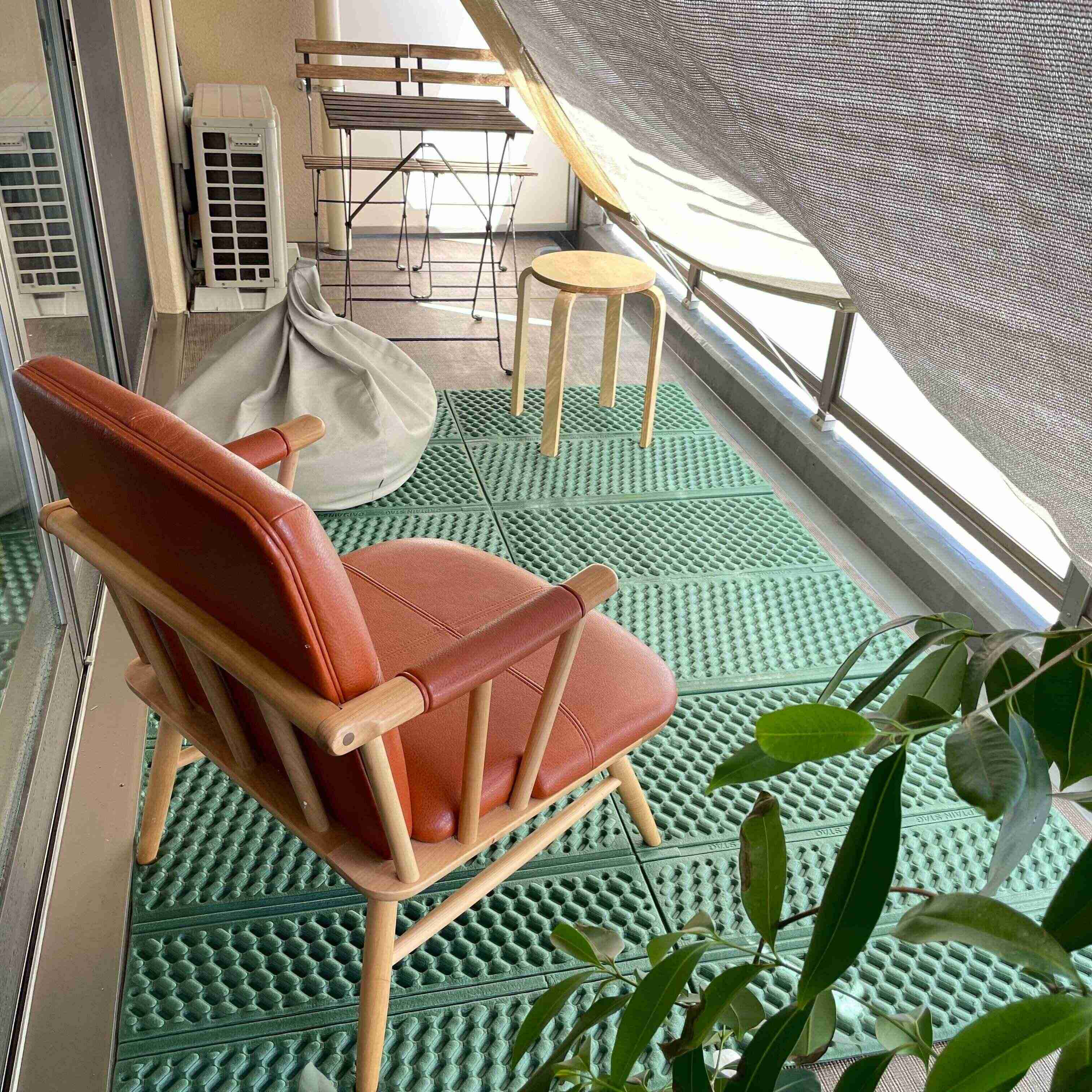 ・ベランダにキャンプマットを敷いて、ソファーを移動させ即席スペースに