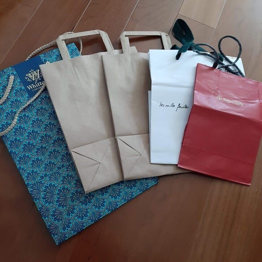 そんな理由が多いですよね。エコバッグがスタンダードになった昨今、サブバッグとしては使う頻度は少なくなりました。大きな紙袋は収納スペースも取るので、シンプルライフを目指す私は全捨てです。小~中サイズの紙袋だけを数枚だけ保管し、誰かに何かを渡す時に使用しています。0枚になる時もありますが、その時は別の方法で渡せばよいのです。紙袋にこだわる必要はありません。