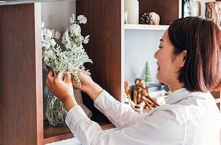 掃除はパパッと5分で終了。ダイニングに花を飾って、気持ちよく過ごします。